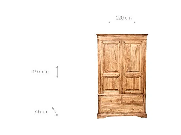 BISCOTTINI - Armoire - Bois massif finition antique naturelle - Armoire de rangement - Garde-robe et dressing - Armoire de jardin - Armoire vintage - 120x59x197 cm