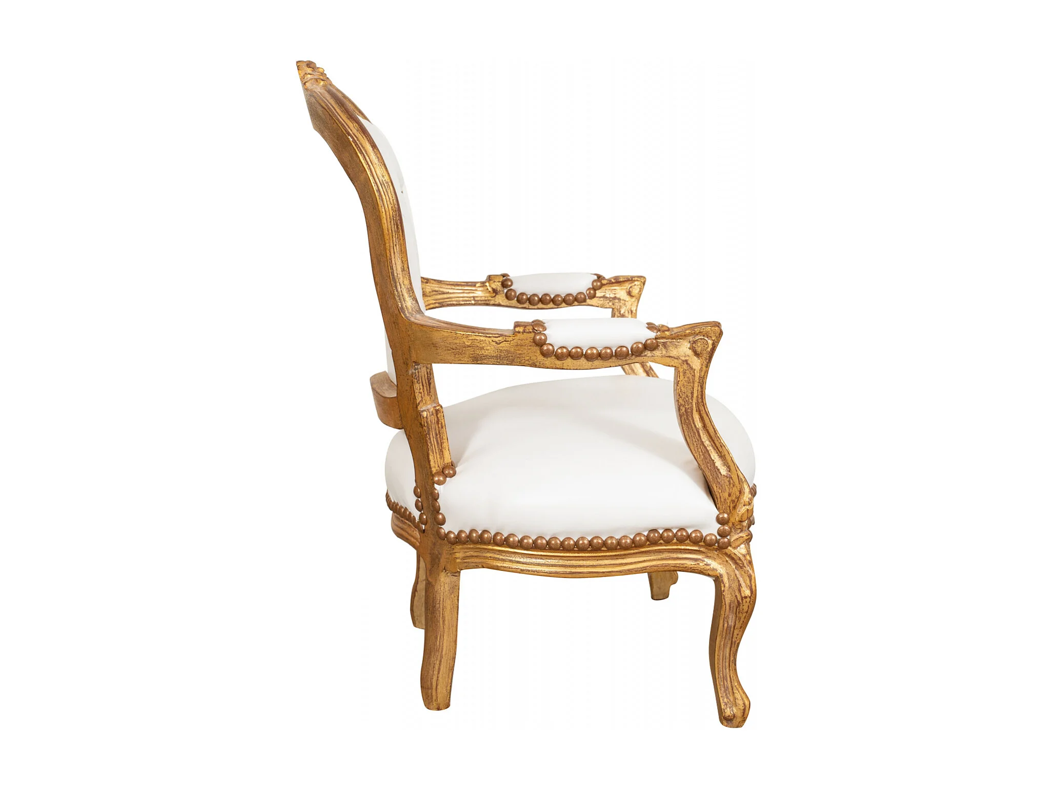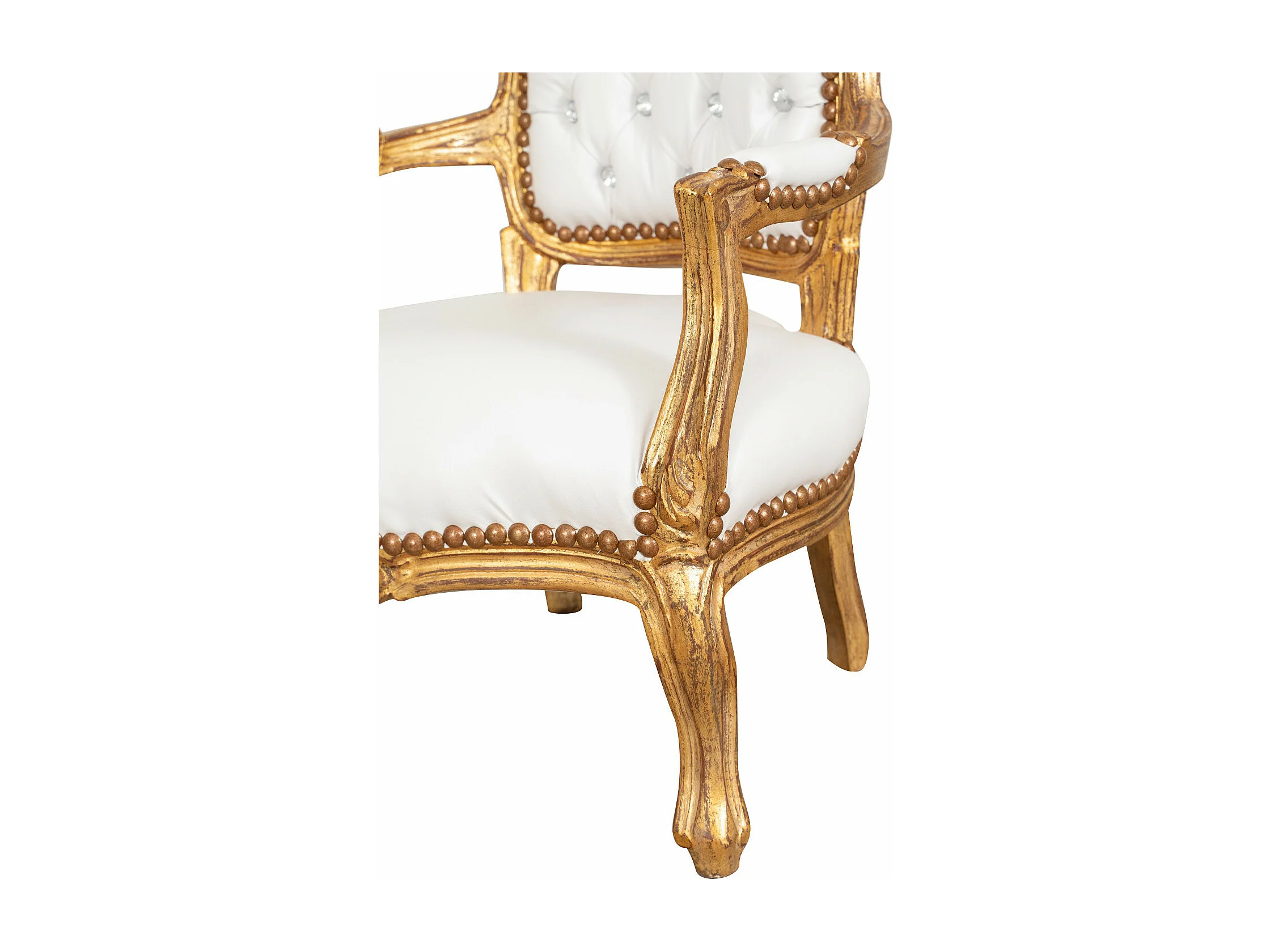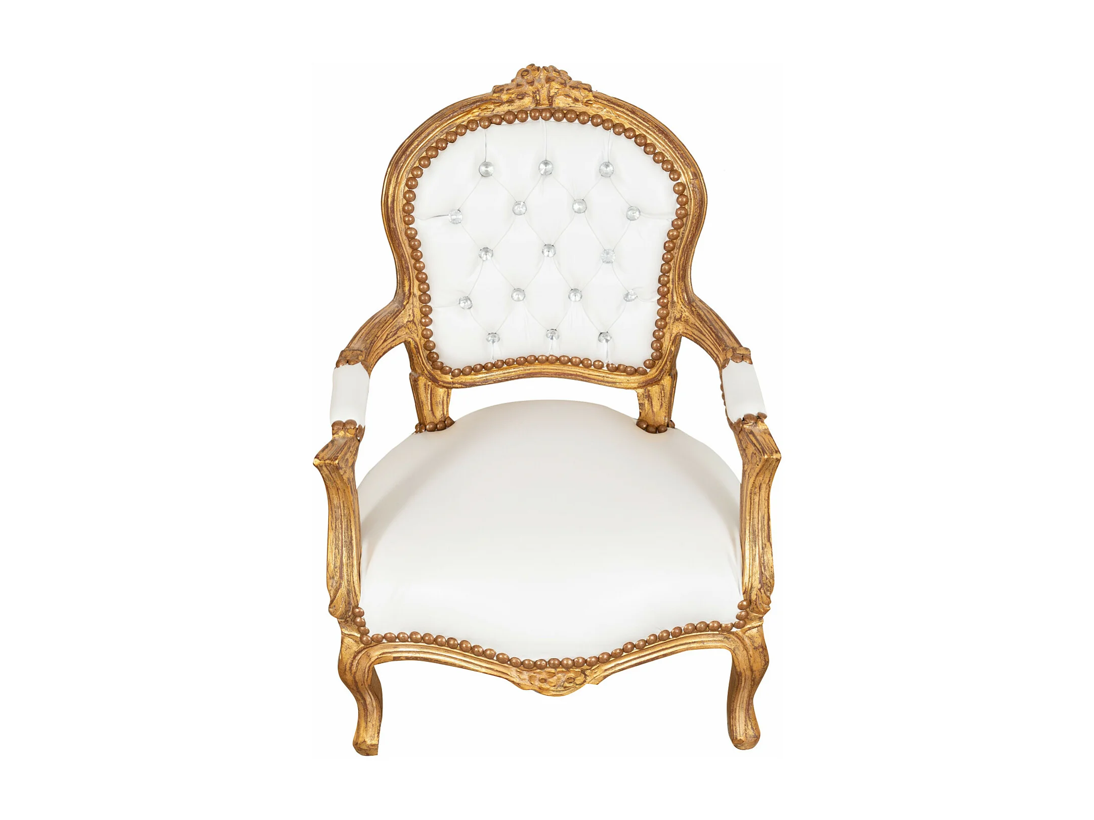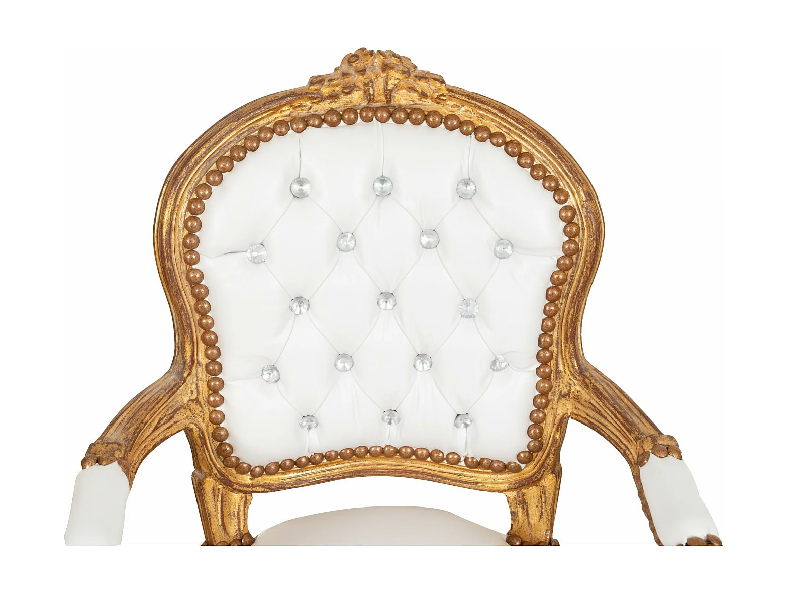 BISCOTTINI Fauteuil bébé en bois de hêtre Louis XVI - Bois massif finition blanc/or - Fauteuil de salle à manger, fauteuil de salon 51x50x73 cm