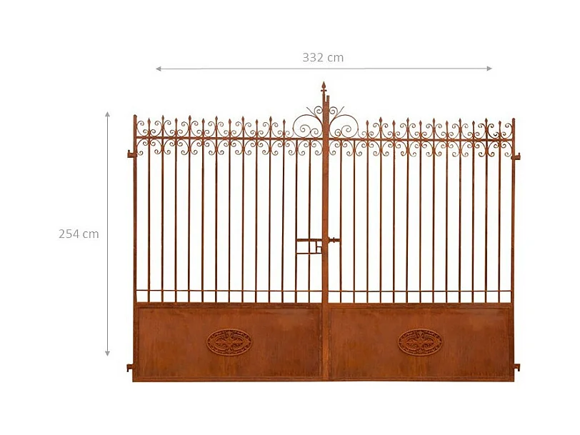 BISCOTTINI Portail en fer - Fer massif avec détails ornementaux - Clôture en fer - Portail en métal - Porte décorative - Portail d'entrée - 332x8x245cm