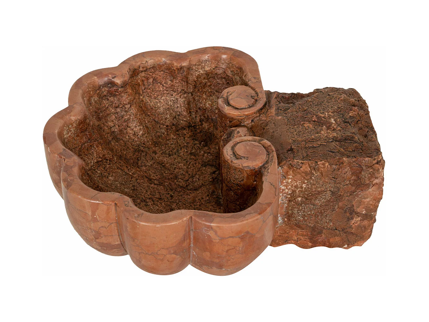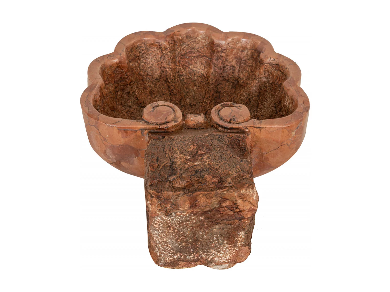 BISCOTTINI Statue bénitier - Finition marbre rouge de Vérone vieilli - Décoratif - À exposer - Jardin - Design - Salon - Mobilier - Église - 26x30x13 cm
