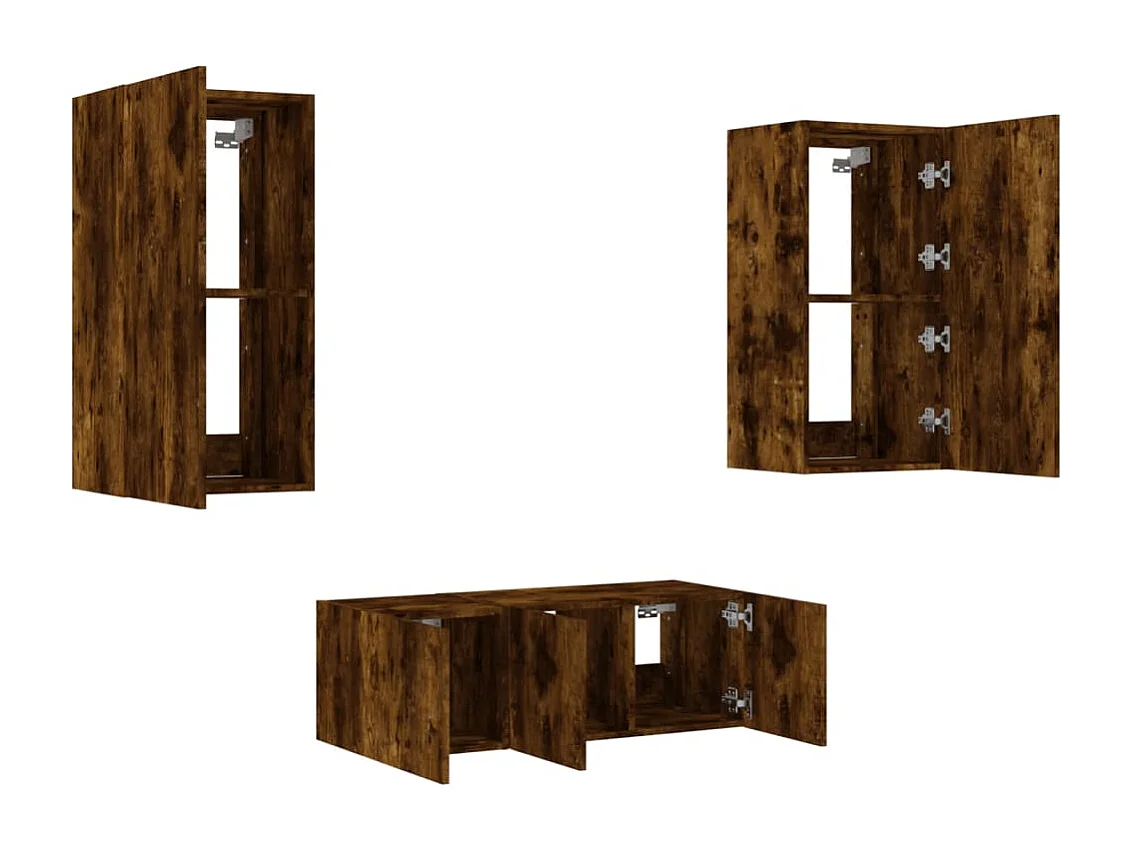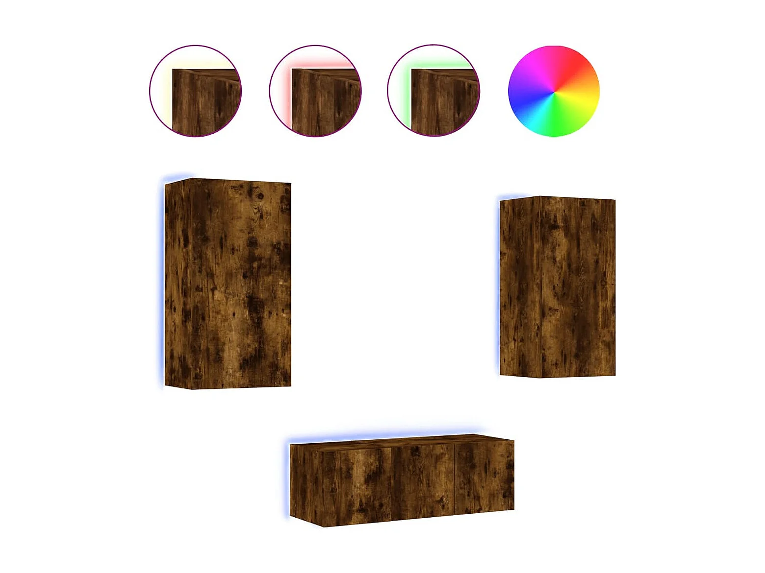 Bjerringbro Unités murales TV avec LED 4 pcs chêne fumé bois d'ingénierie