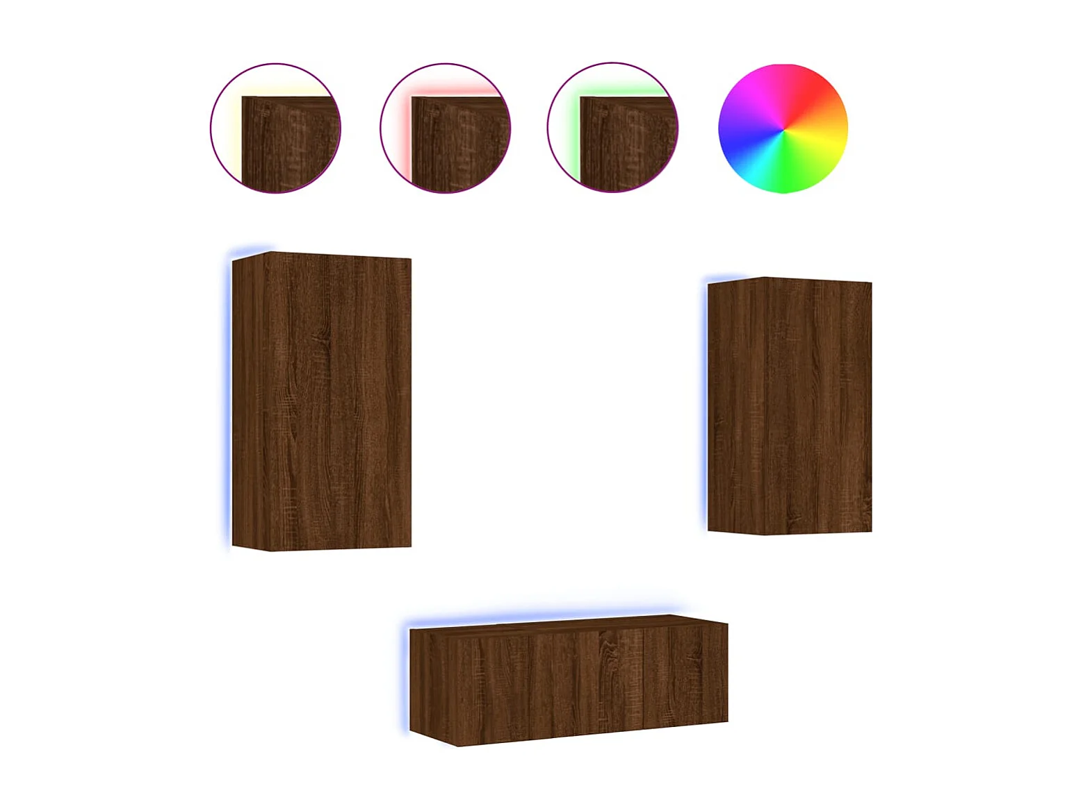 Bjerringbro Unités murales TV avec LED 4 pcs chêne marron bois d'ingénierie