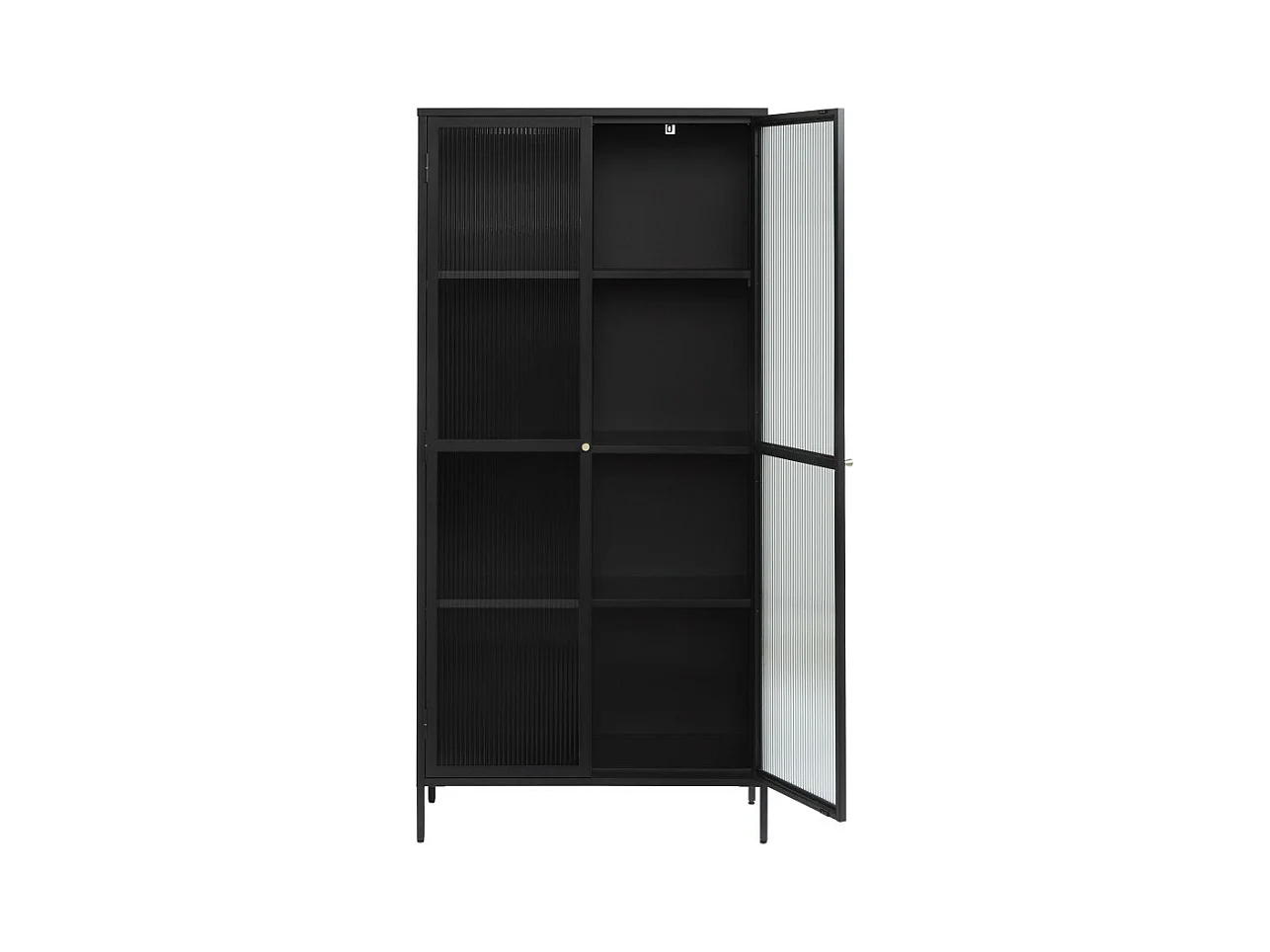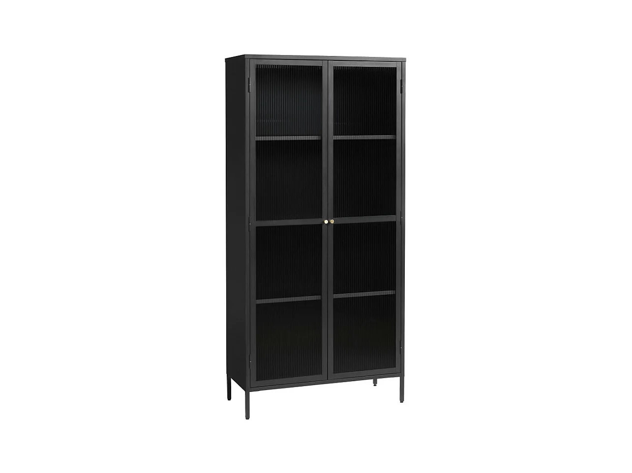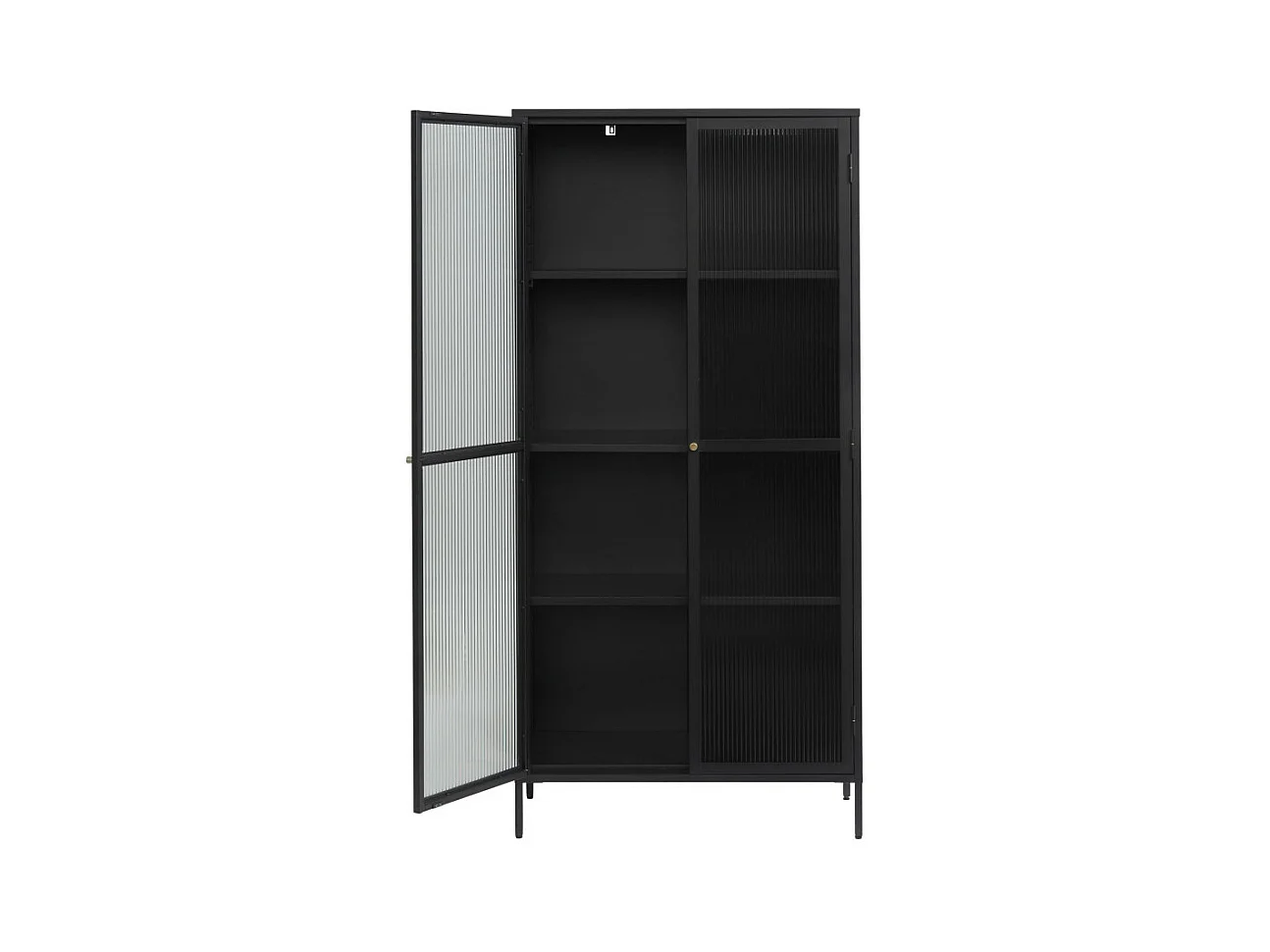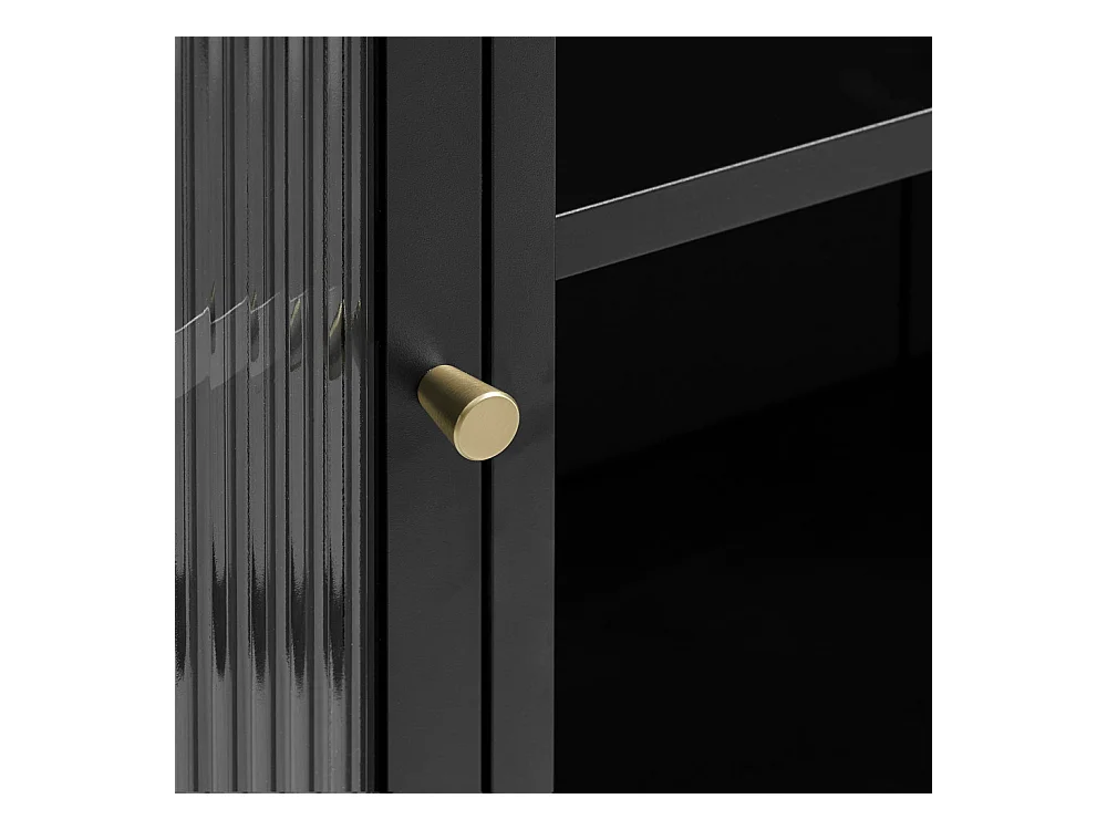 Bjorn - Vaisselier 2 portes en verre stié et métal H190cm - Noir