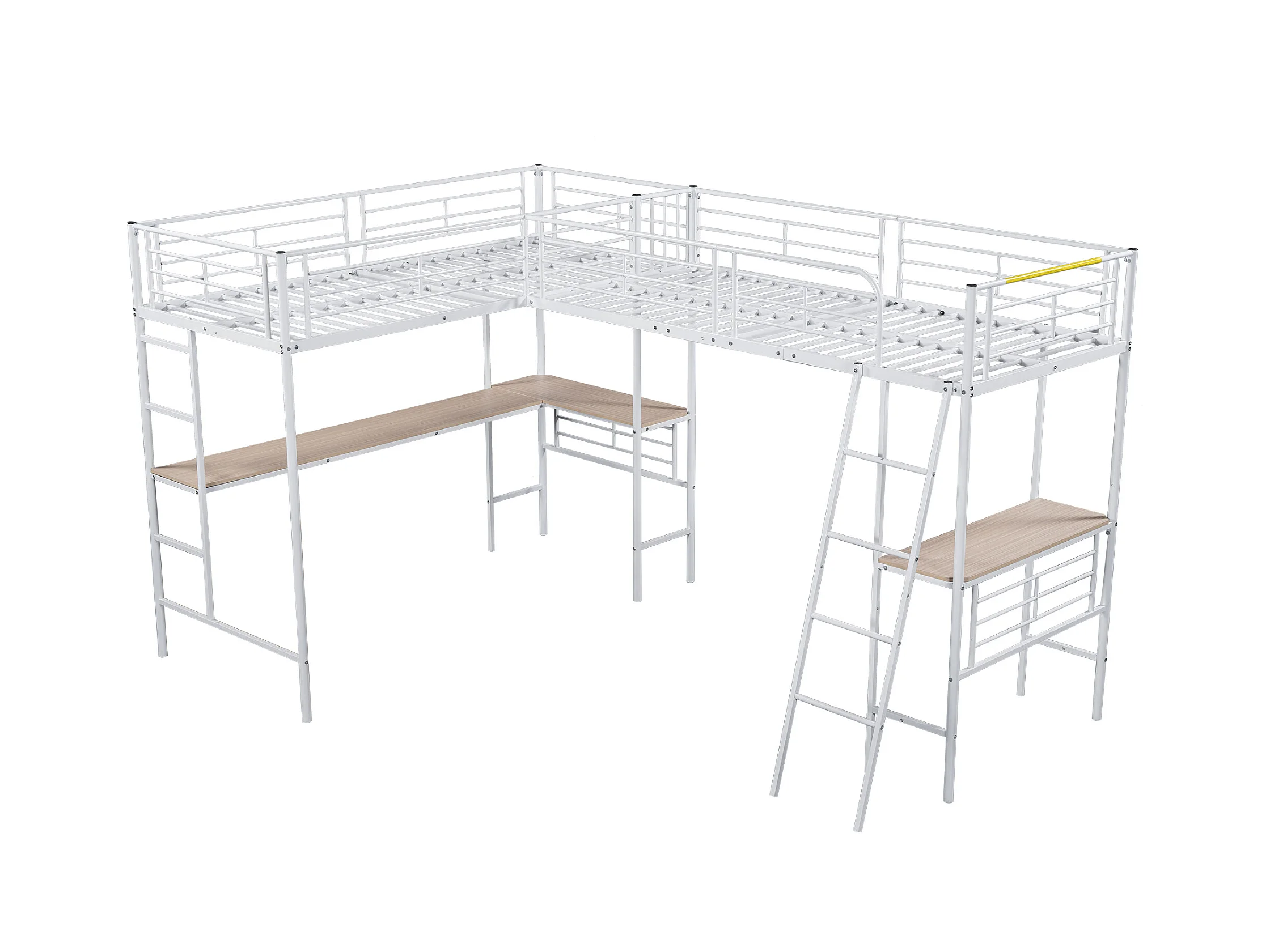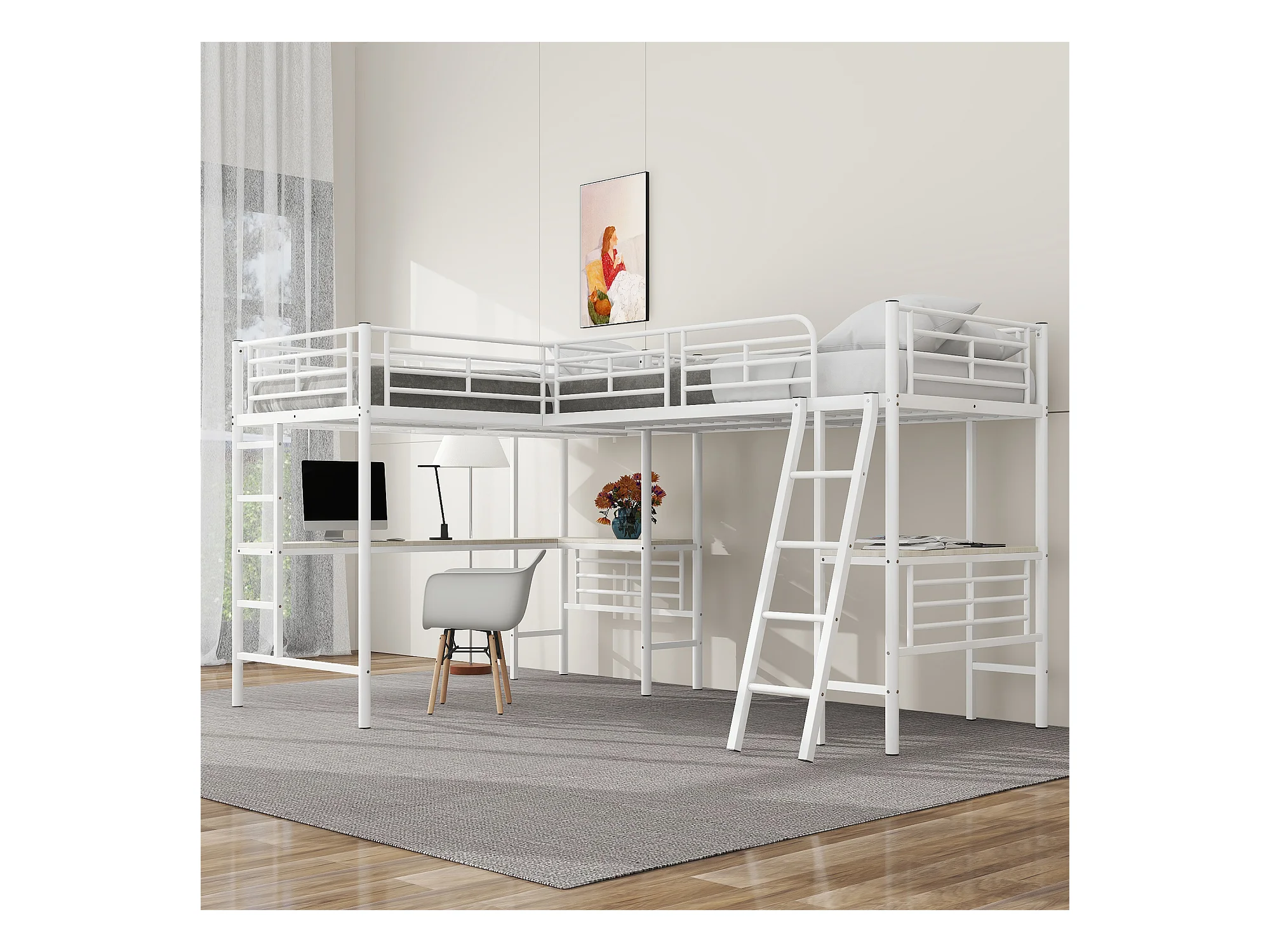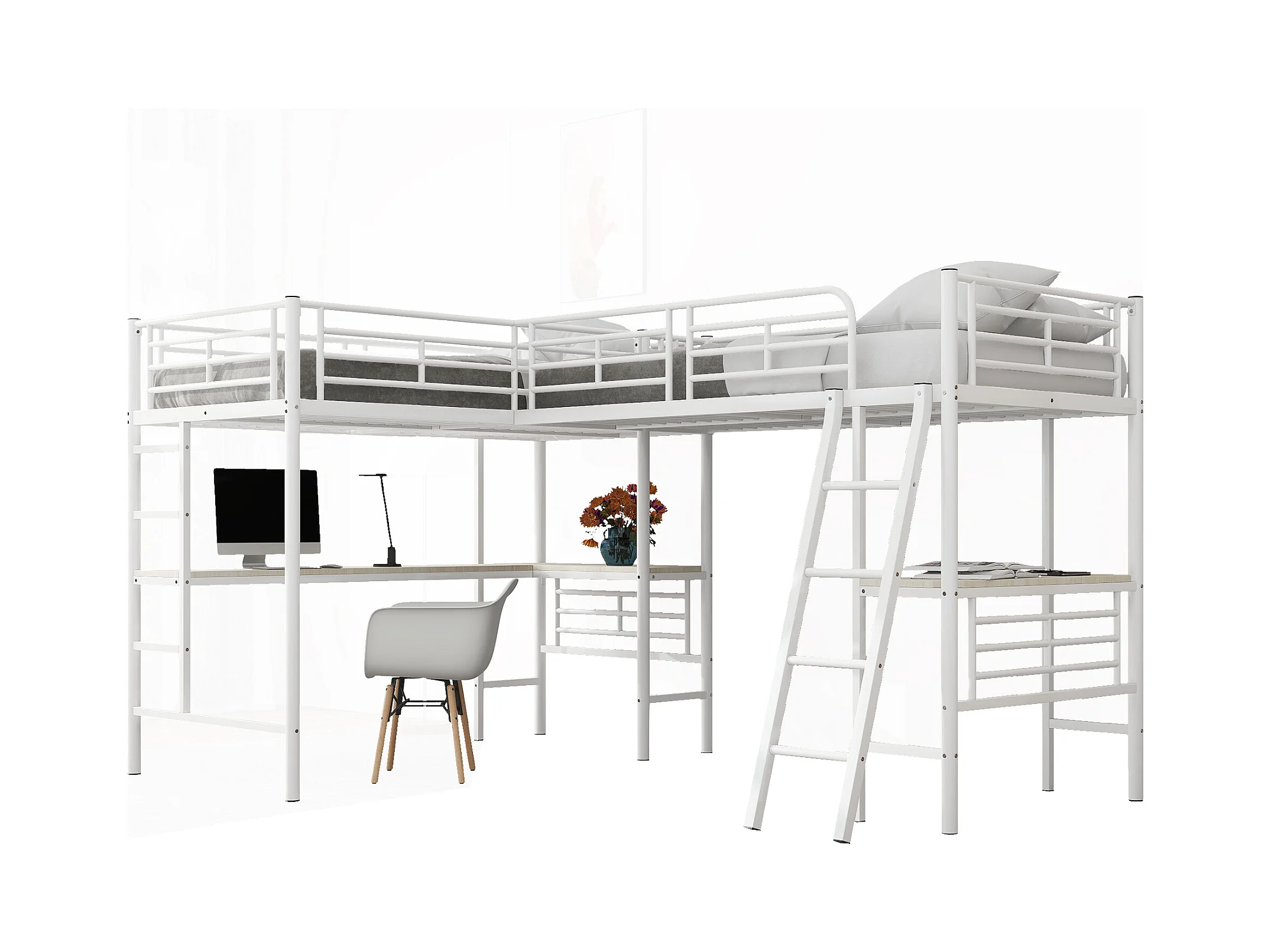 Blanc 90 * 200cm lits superposés, deux lits superposés, table sous le lit, Double escalier, barre de haute hauteur