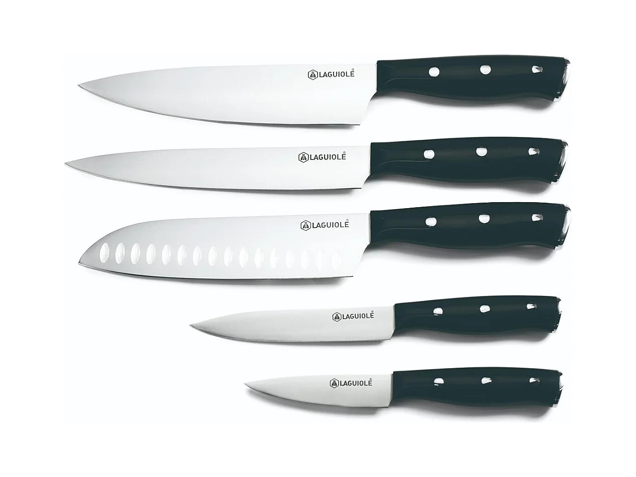 Bloc de 5 couteaux en acier noir - "Gleam"