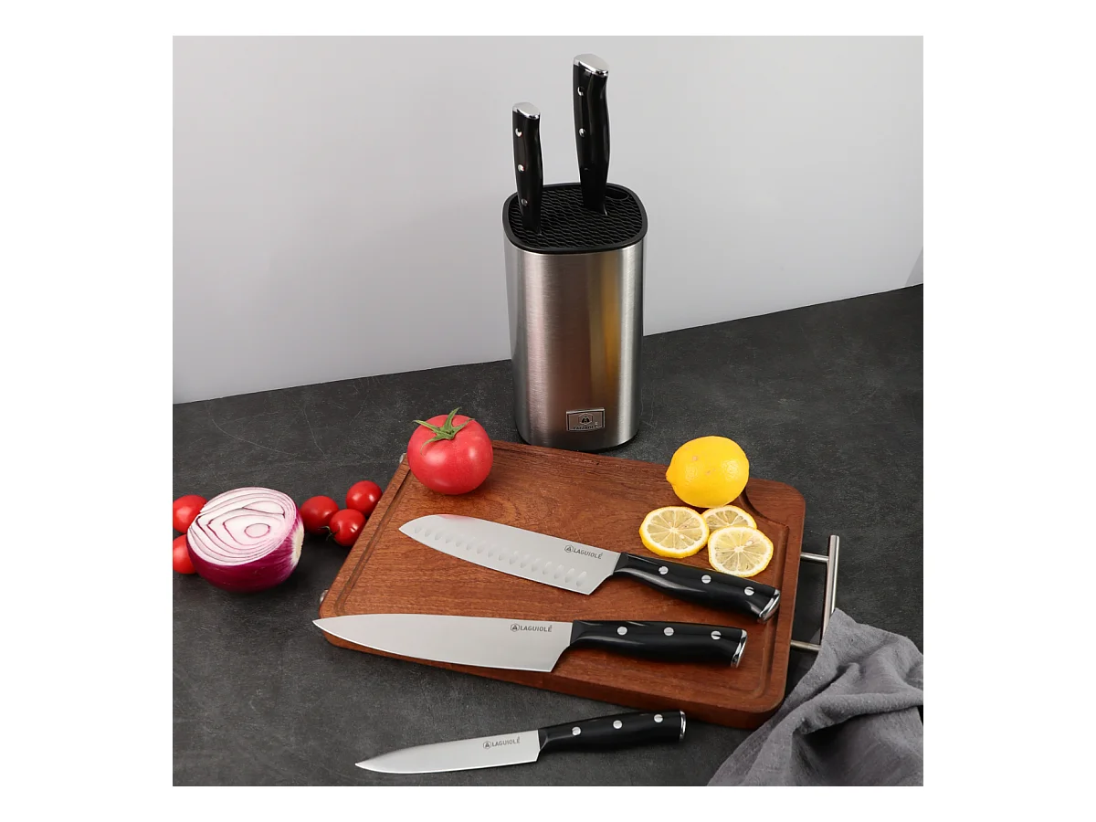 Bloc de 4 couteaux en acier noir - "Scintibois"