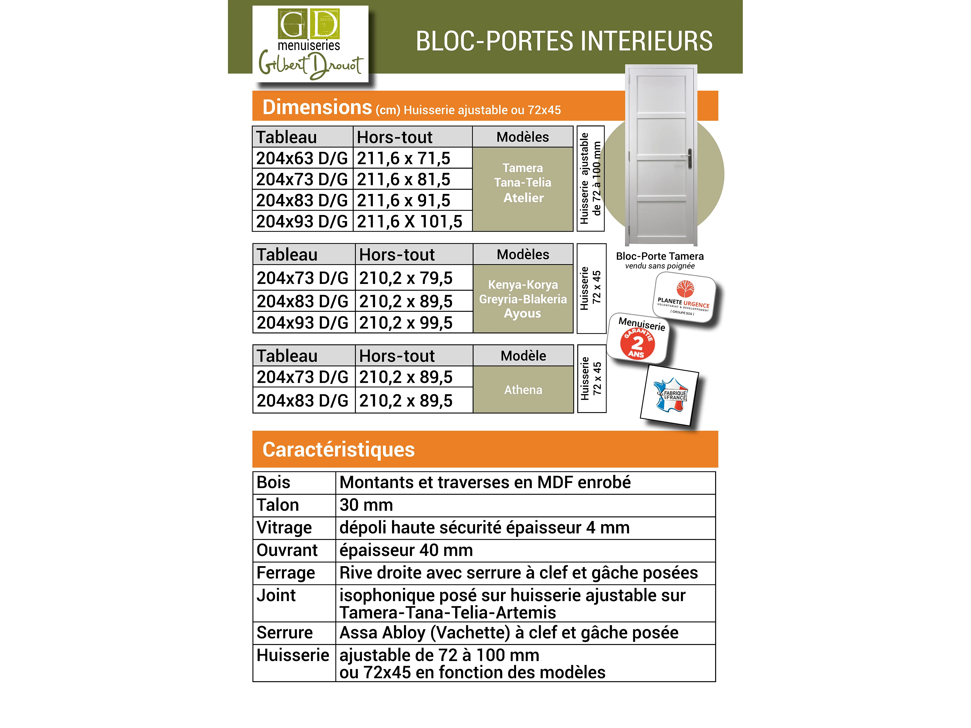 Bloc Porte Frake 3 Panneaux H204 X L73 Poussant Gauche Cotes Tableau Gd Menuiseries