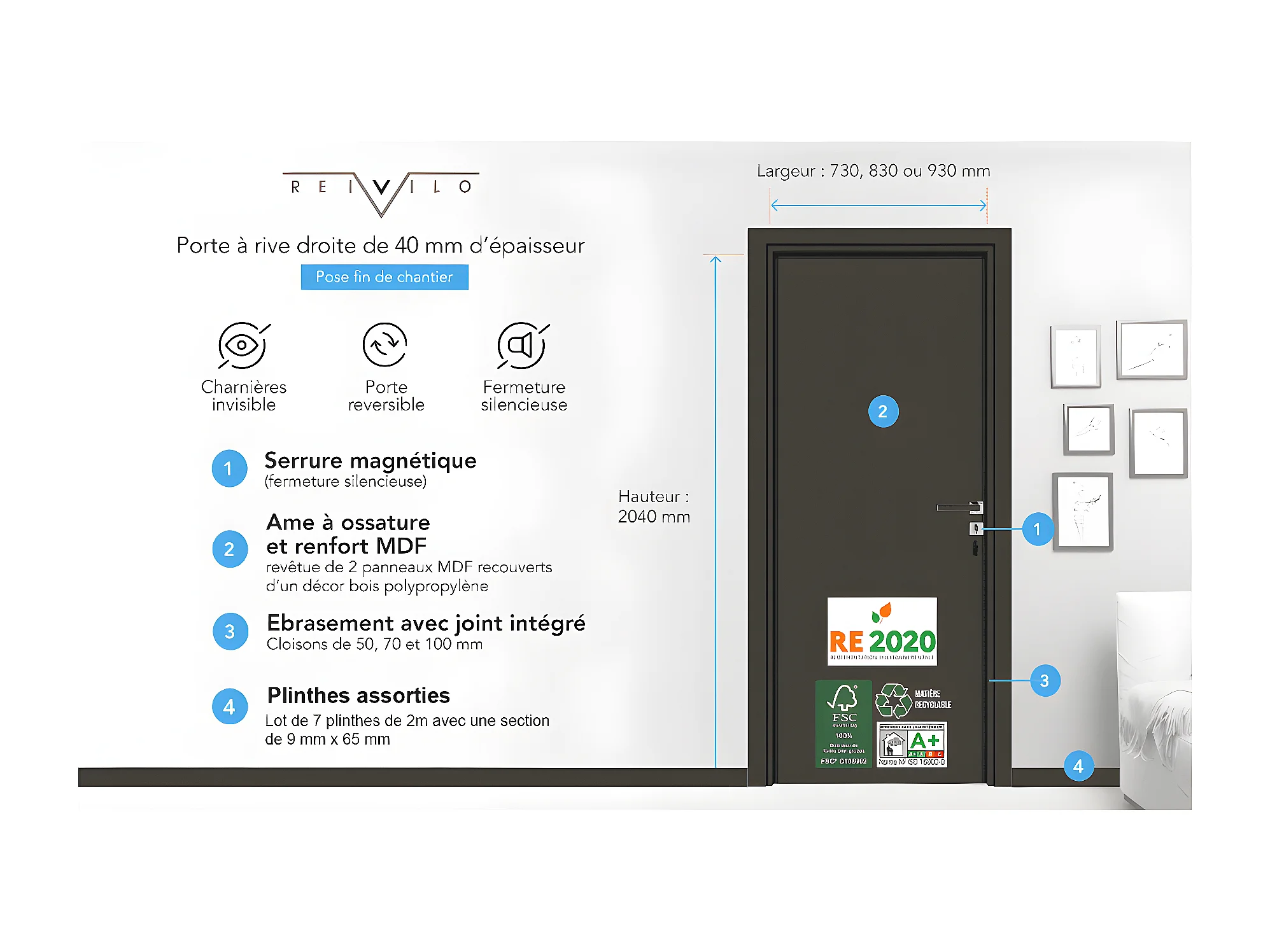 Bloc-porte pose fin de chantier collection Premium Seymour, H.204 x l.83 cm, aspect chêne naturel, réversible