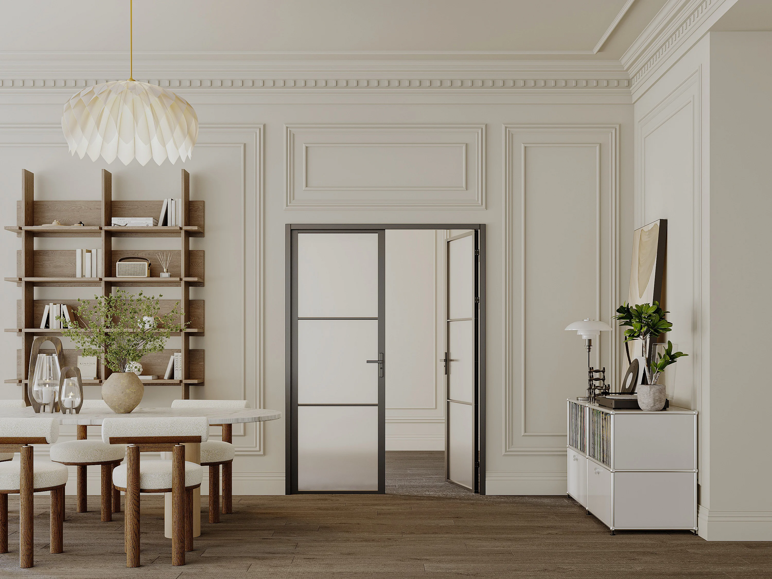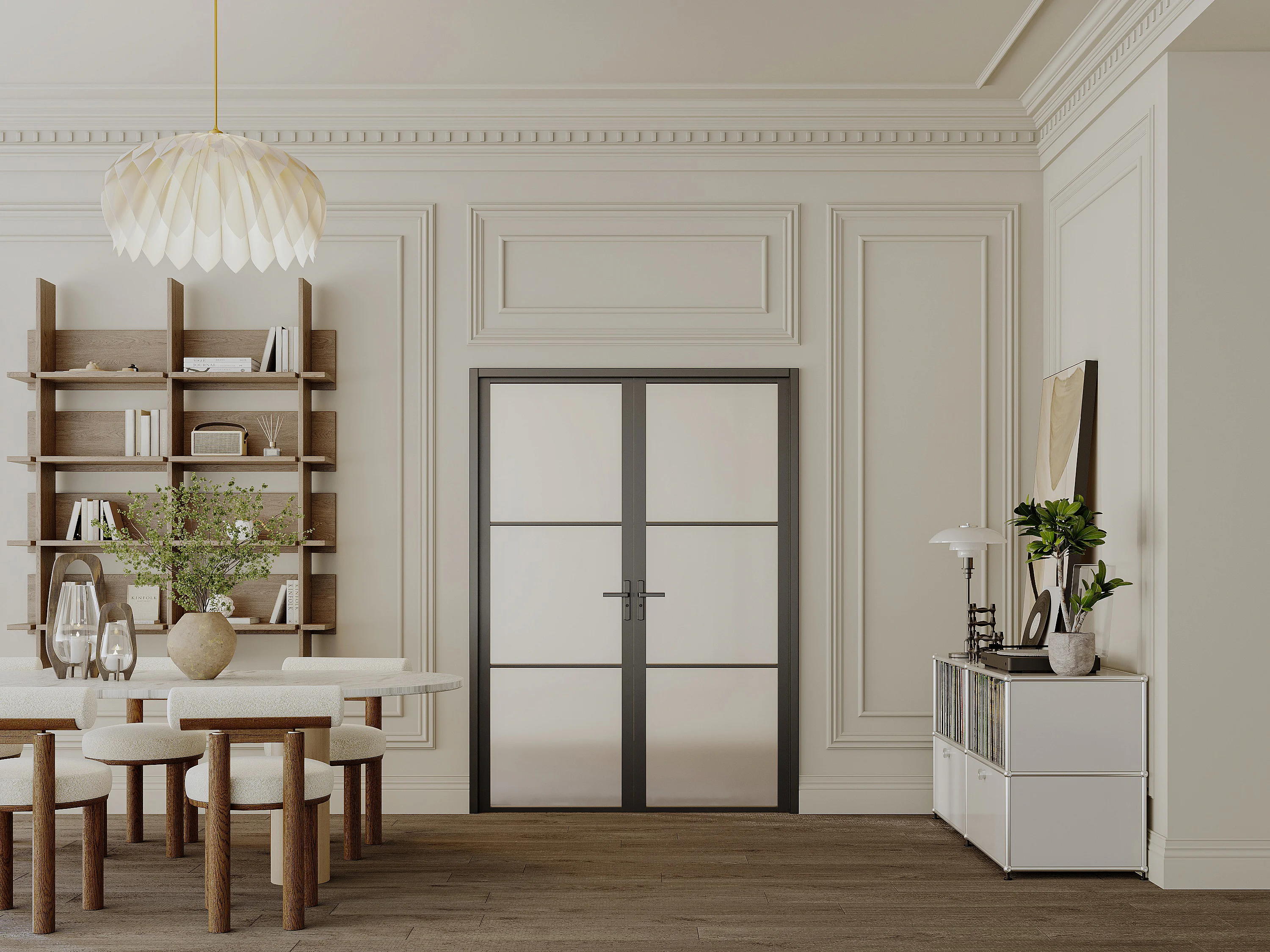 Bloc porte réversible à deux battants en aluminium et verre dépoli - 2 x H204 x L93 cm - Noir - MASERU