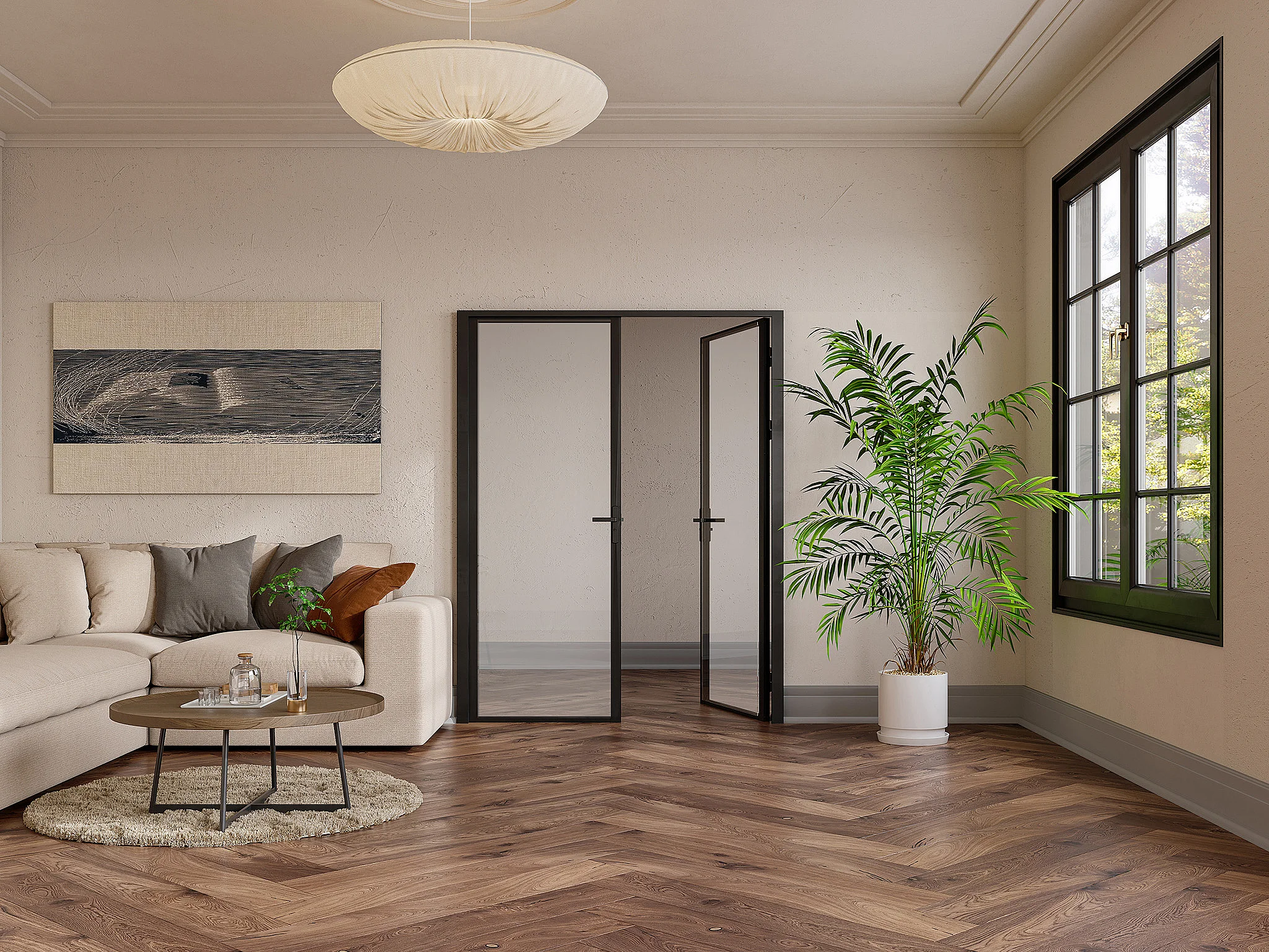 Bloc porte réversible à deux battants en aluminium et verre trempé - 2 x H204 x L93 cm - Noir - LOXTON
