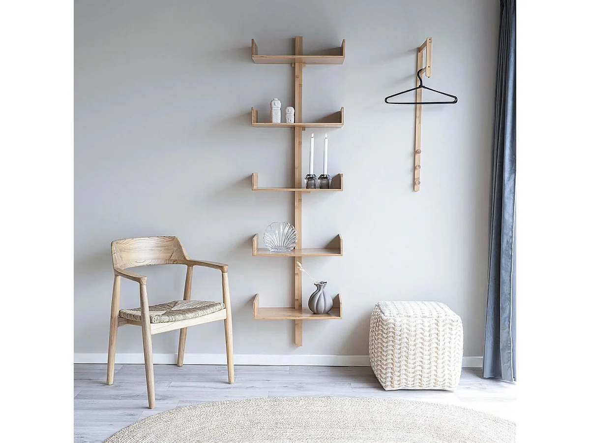 RAYAN - Portant Mural en Bambou avec Patères Mobiles
