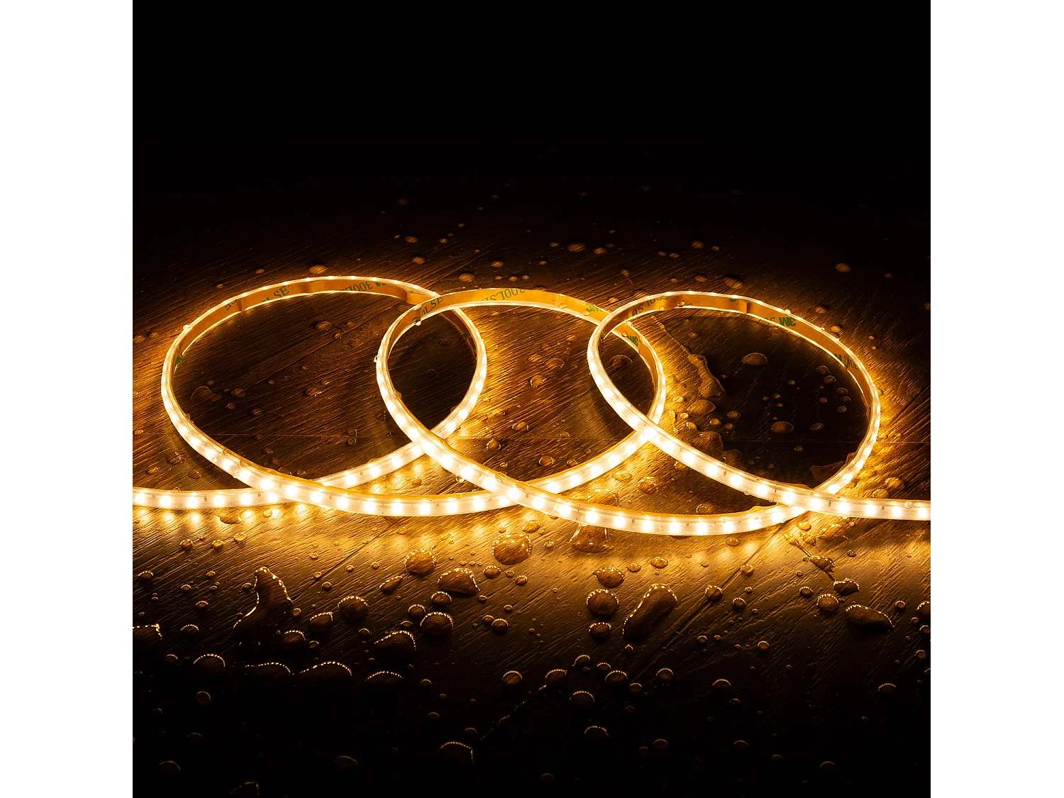 Ruban LED Dimmable 220V SMD Auto-redressement 120 LED/m 10W/m 1000lm/m Largeur 12mm Coupe 10cm IP65 Sur mesure 2700K Blanc chaud 10 m