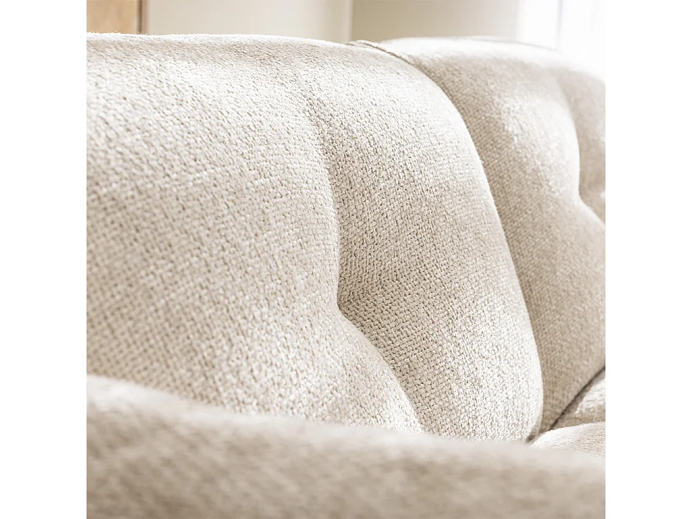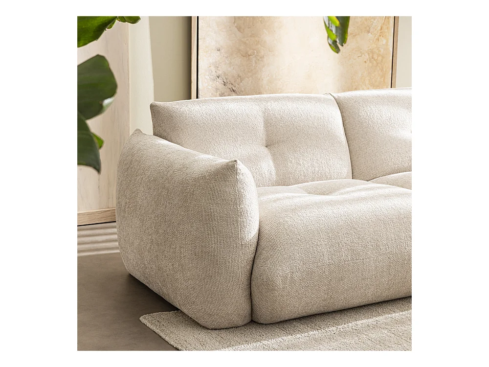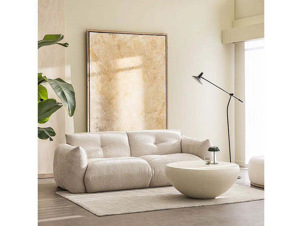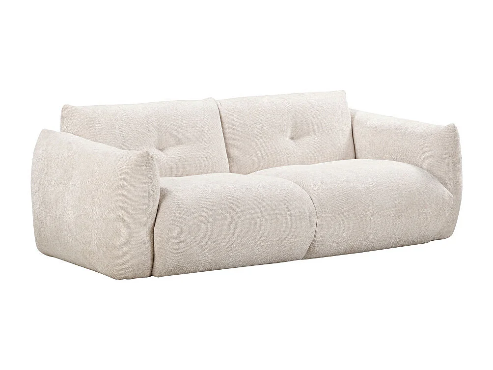 Bocca - Canapé droit 3 places en tissu à dossier capitonné - Écru