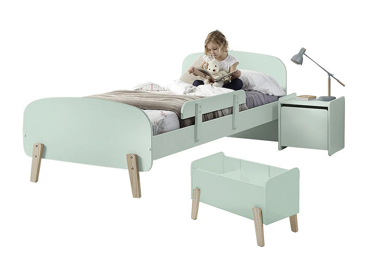 BODHI MINT - Lit 90x200cm avec Barrière + Chevet + Coffre