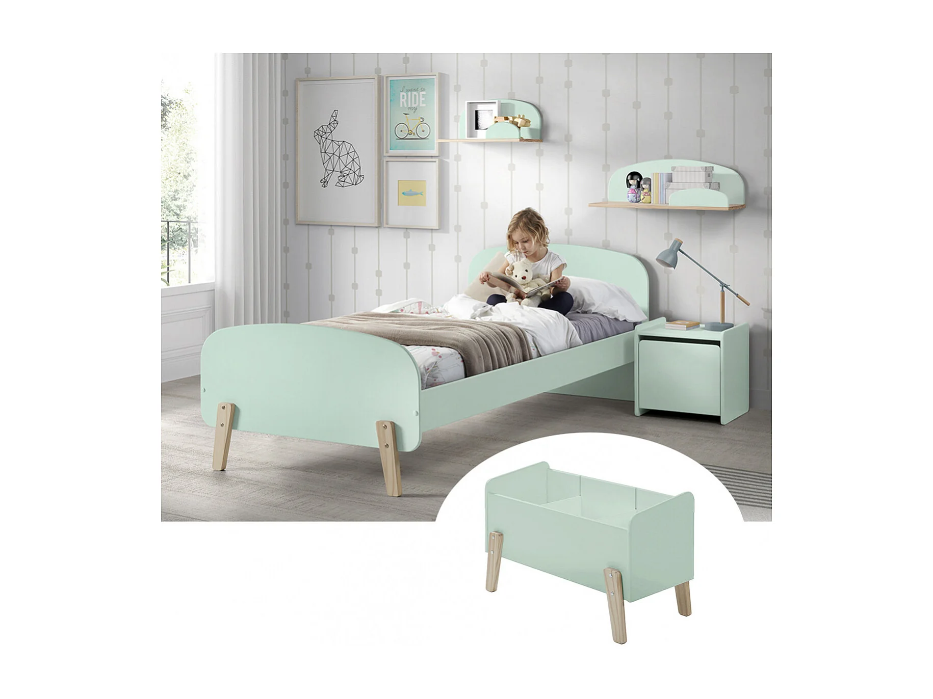 BODHI MINT - Lit 90x200cm + Chevet + Coffre + Etagères
