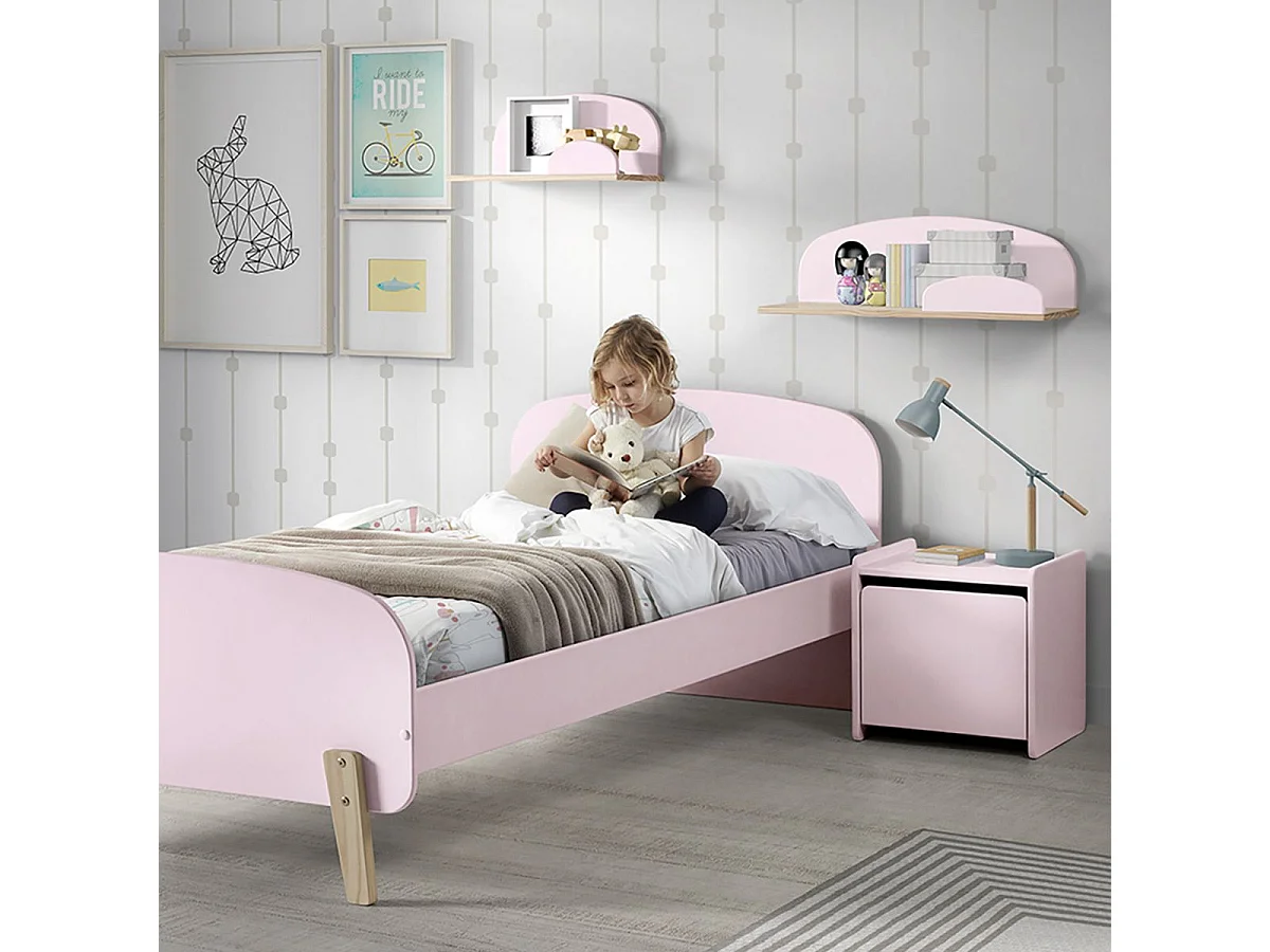 BODHI PINK - Lit 90x200cm + Chevet + Coffre + Etagères