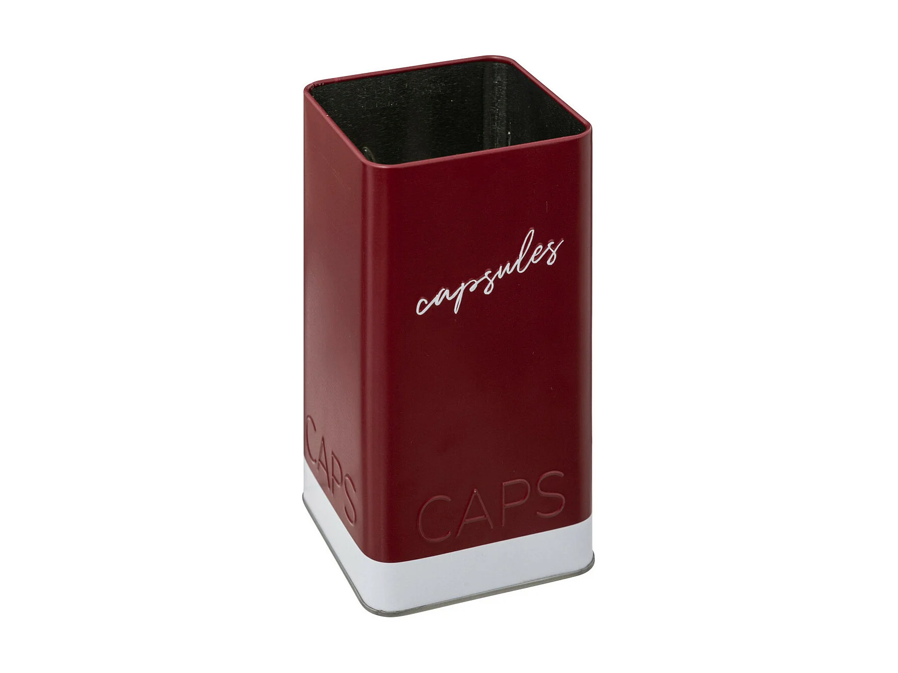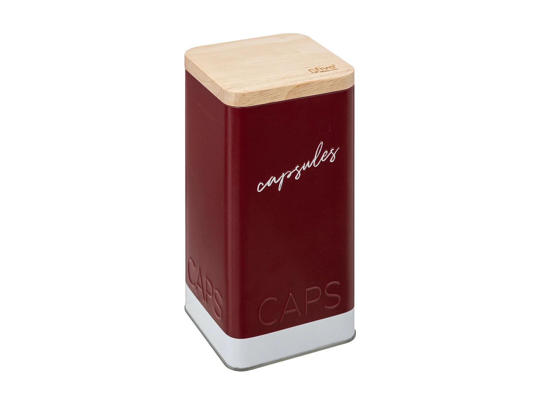 Boîte à capsules en métal Bordeaux et couvercle en bois déco Relief Color