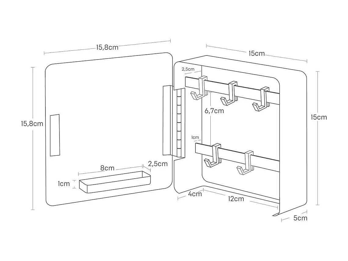 Boîte à clés en Bois 9 crochets et Porte vitrée 30 x 40 cm