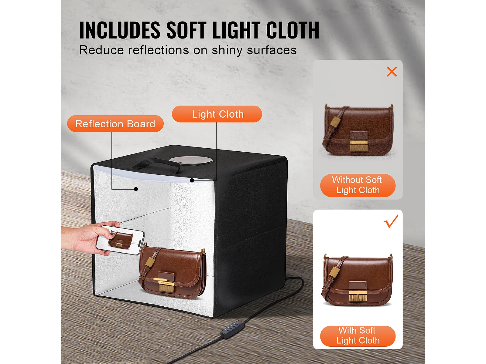 Boîte à Lumière Studio Photo SucceBuy, 41x40x39 cm, 3000 - 5600 K, 6 Toiles de Fond
