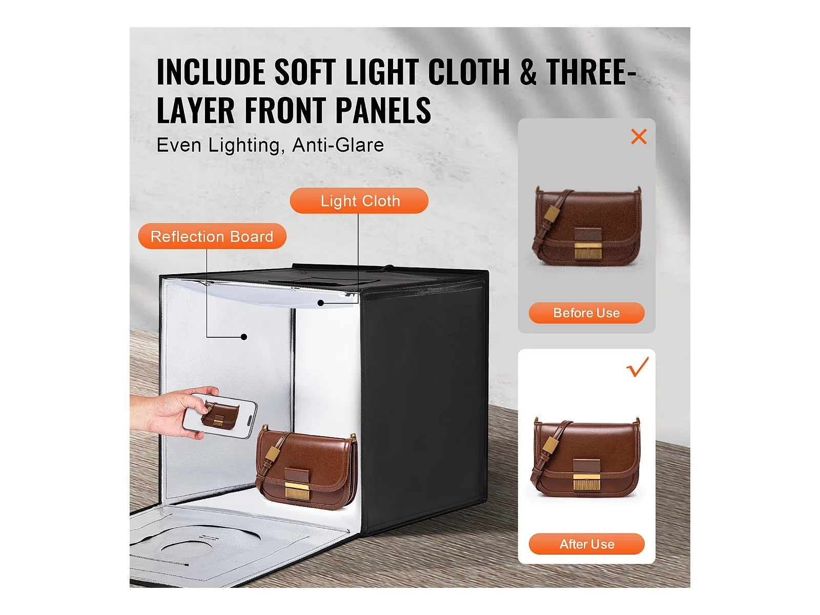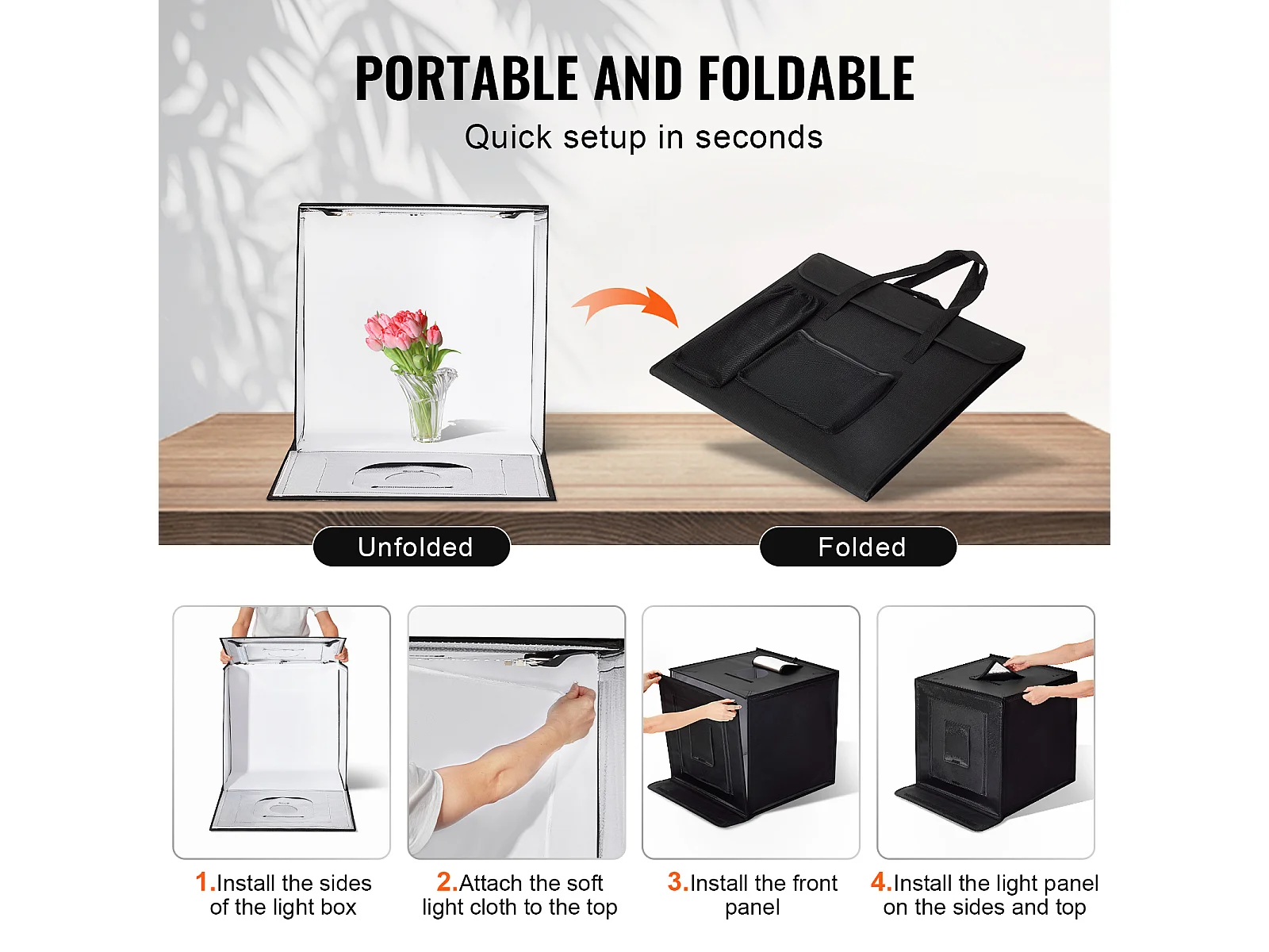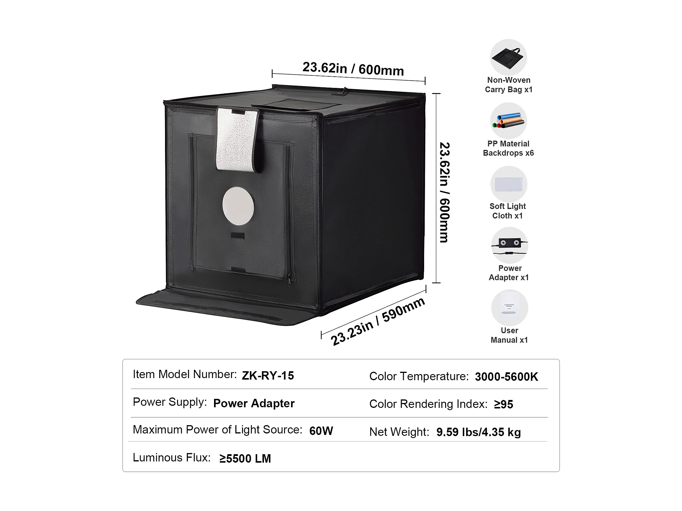 Boîte à Lumière Studio Photo SucceBuy, 60x60 cm, Températures Réglables de 3000 à 5600 K