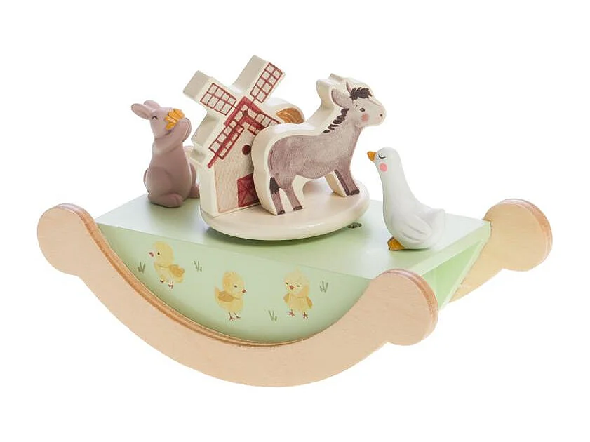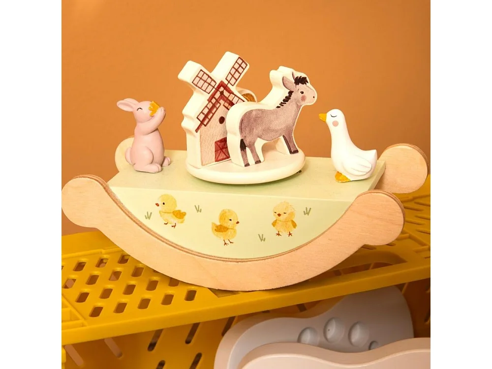 Jouet à bascule agneau pour enfant +12 mois effet sonore poignées repose-pieds siège ceinture réglable crème gris