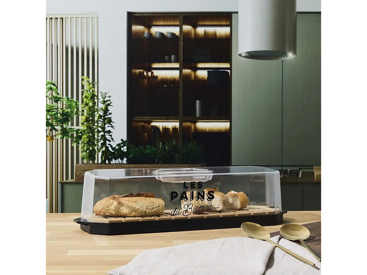 Boite A Pain Couvercle Transparent Bistrot Transparent, Noir, Marron