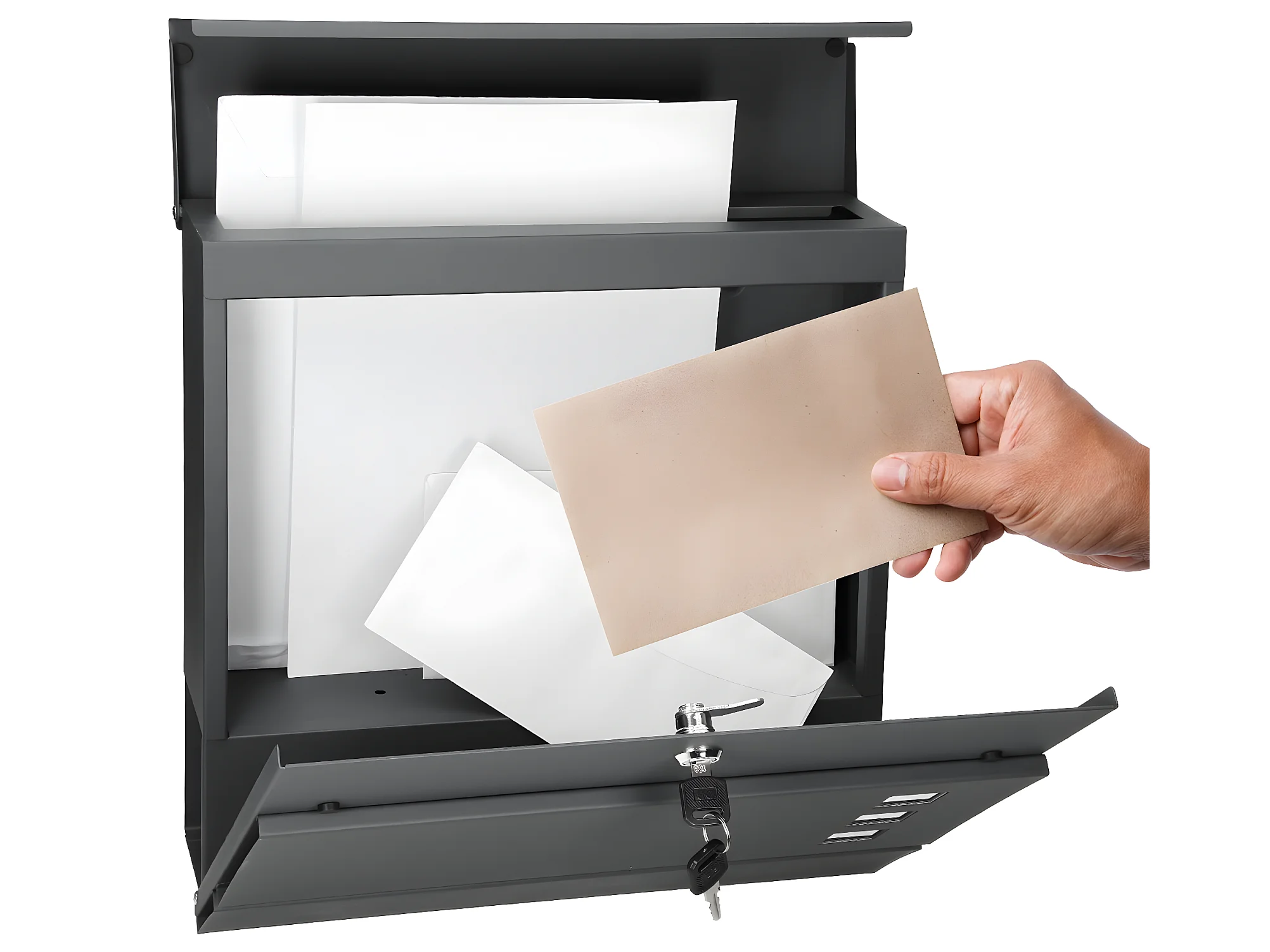 Boîte aux lettres murale en acier anthracite avec compartiment à lettres 2 clés