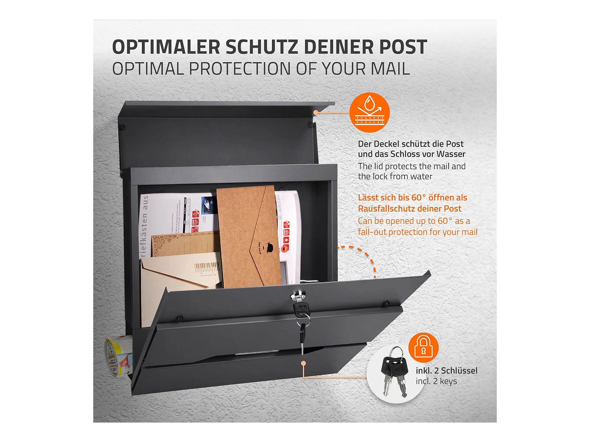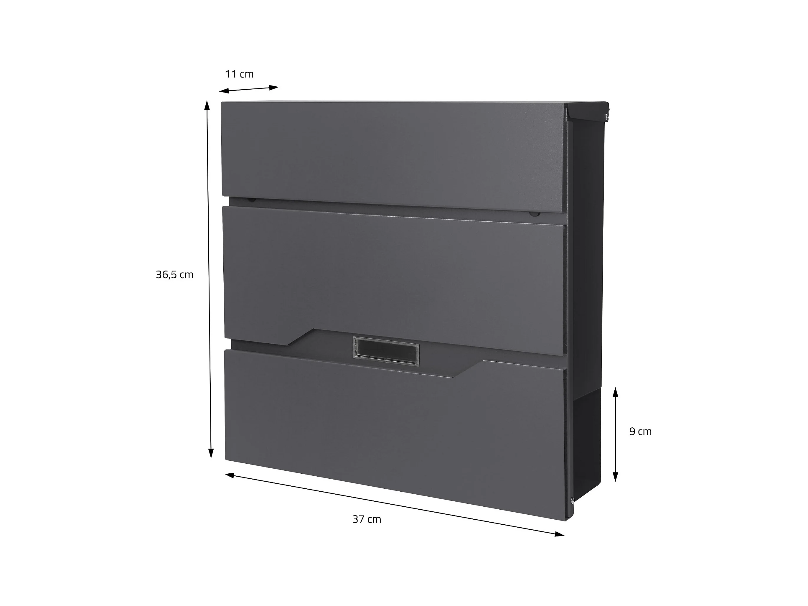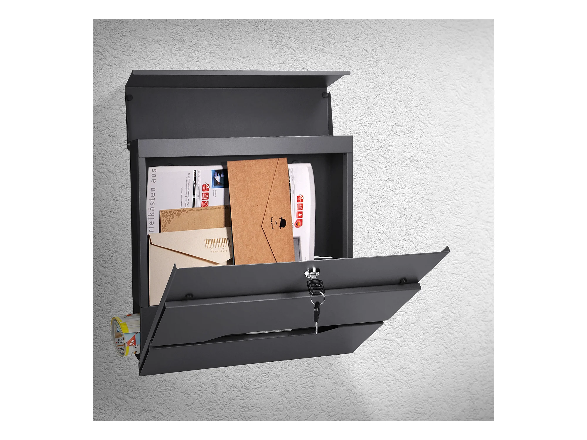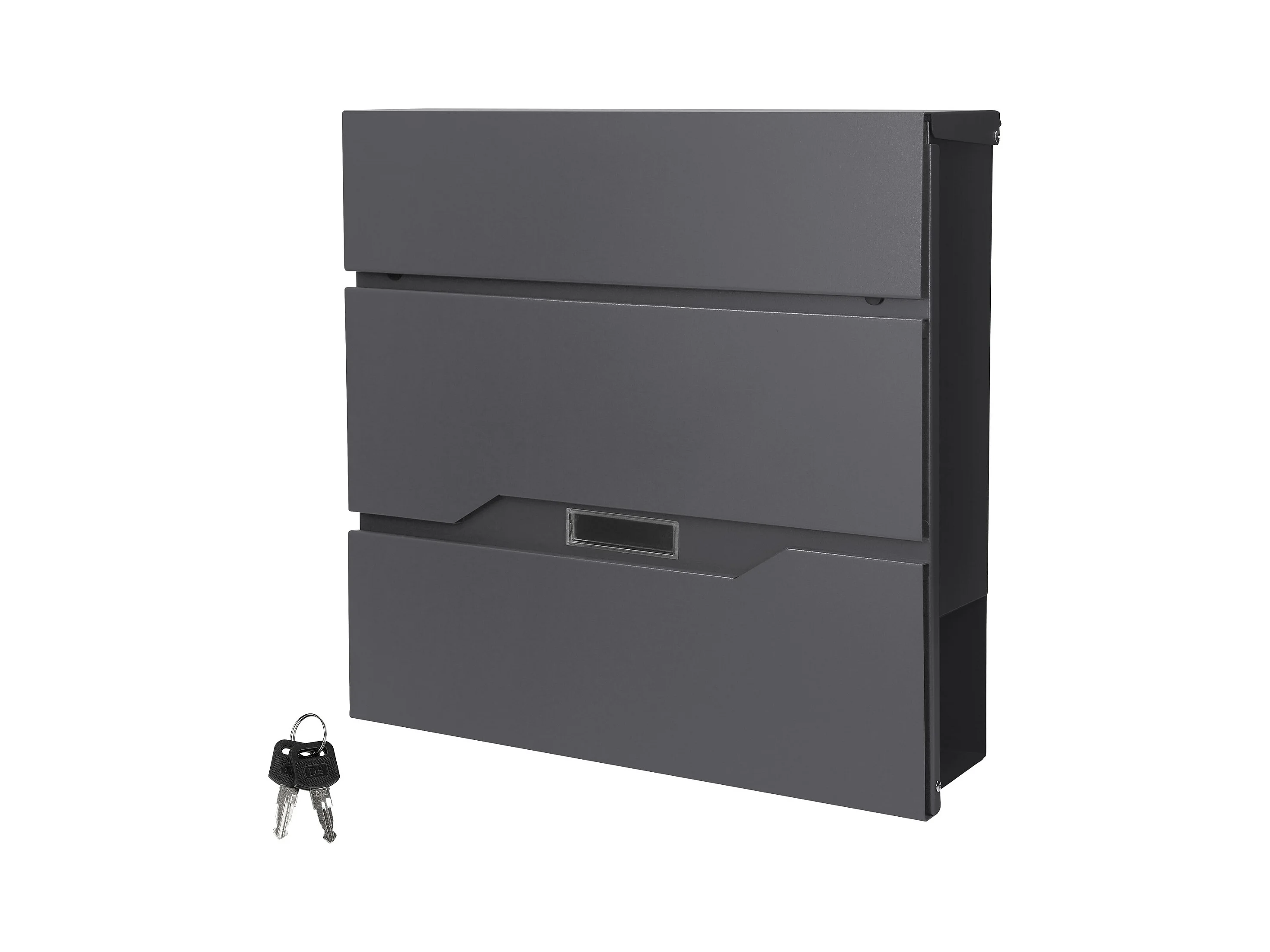 Boîte aux lettres murale en acier anthracite avec compartiment à lettres 2 clés