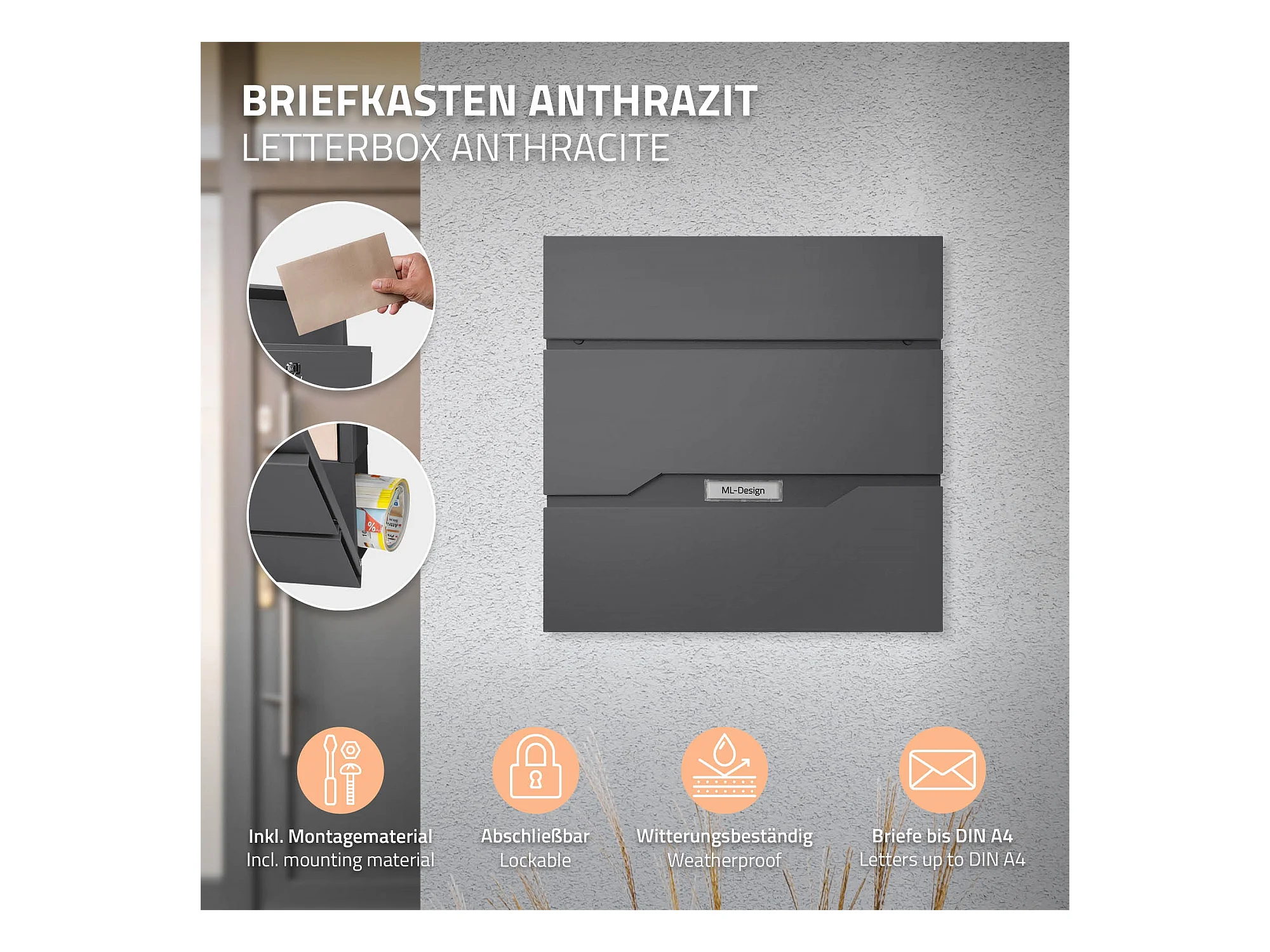 Boîte aux lettres moderne en acier anthracite imitation bois murale ML-DESIGN