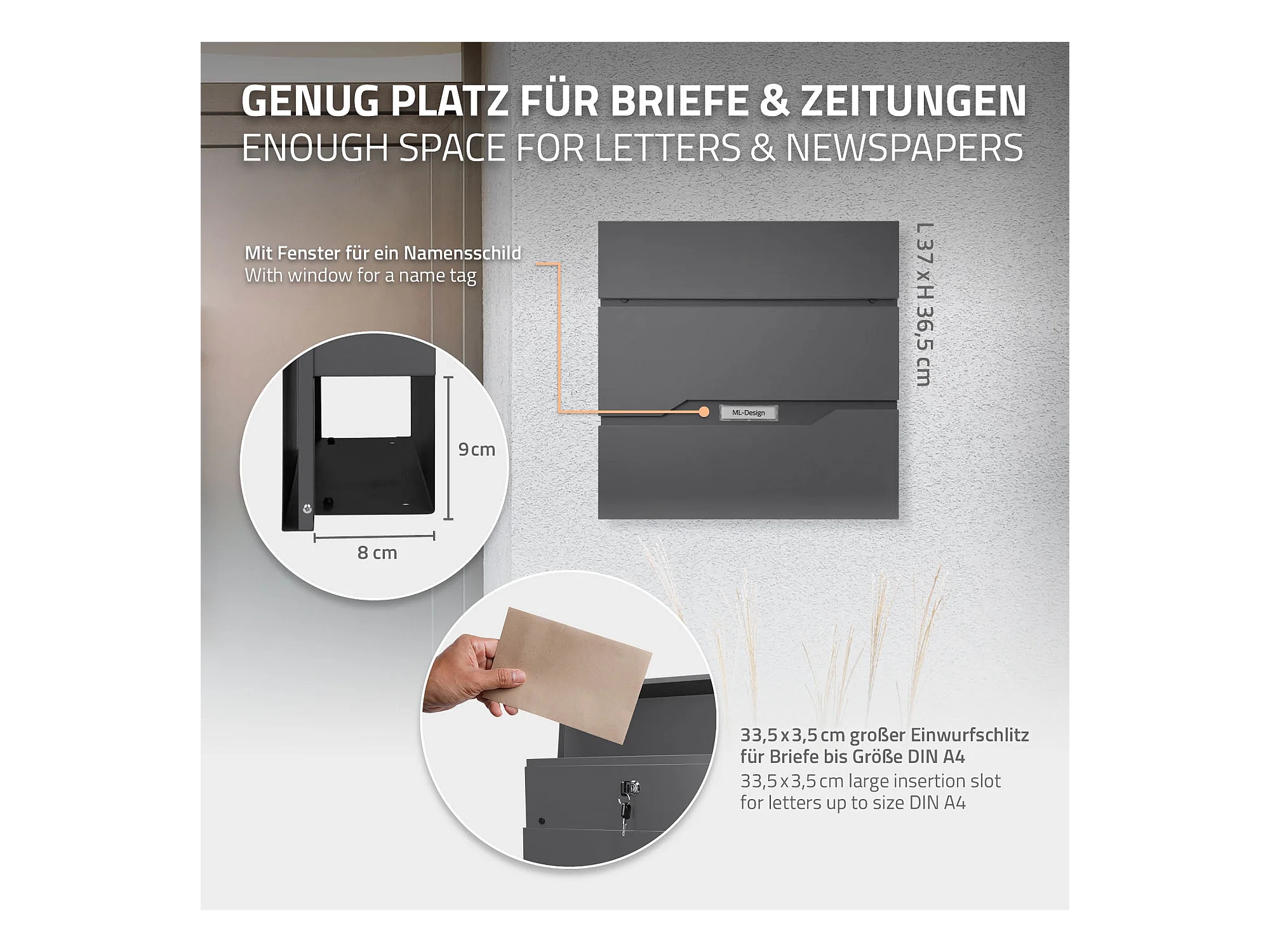 Boîte aux lettres anthracite / aspect bois avec support argenté ML-Design