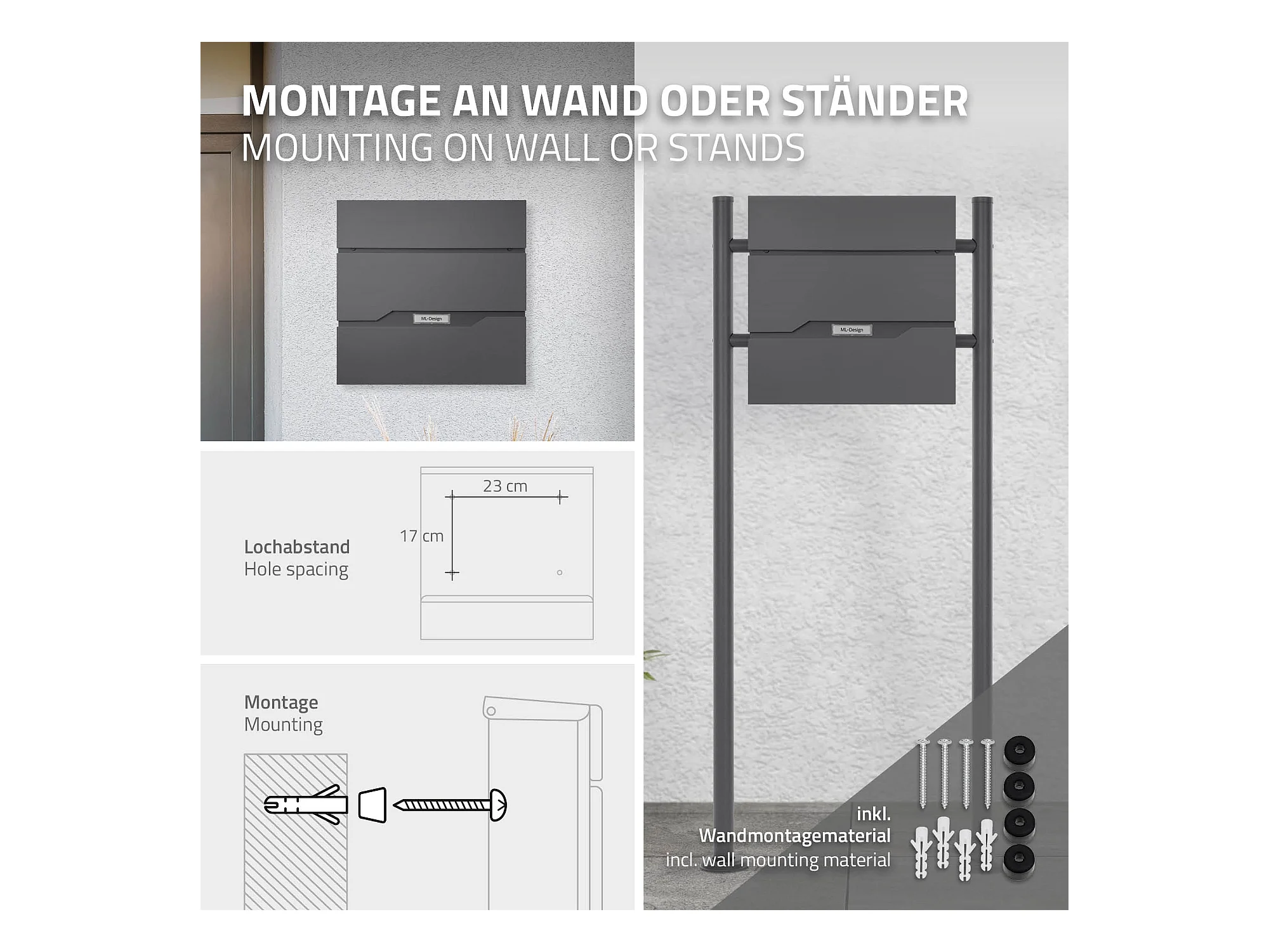 Boîte aux lettres en acier anthracite optique chêne murale moderne ML-DESIGN