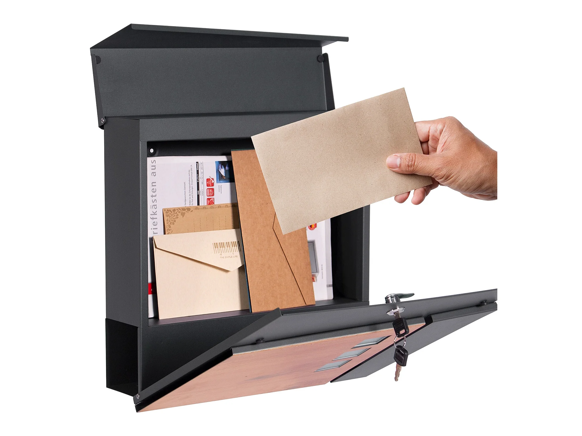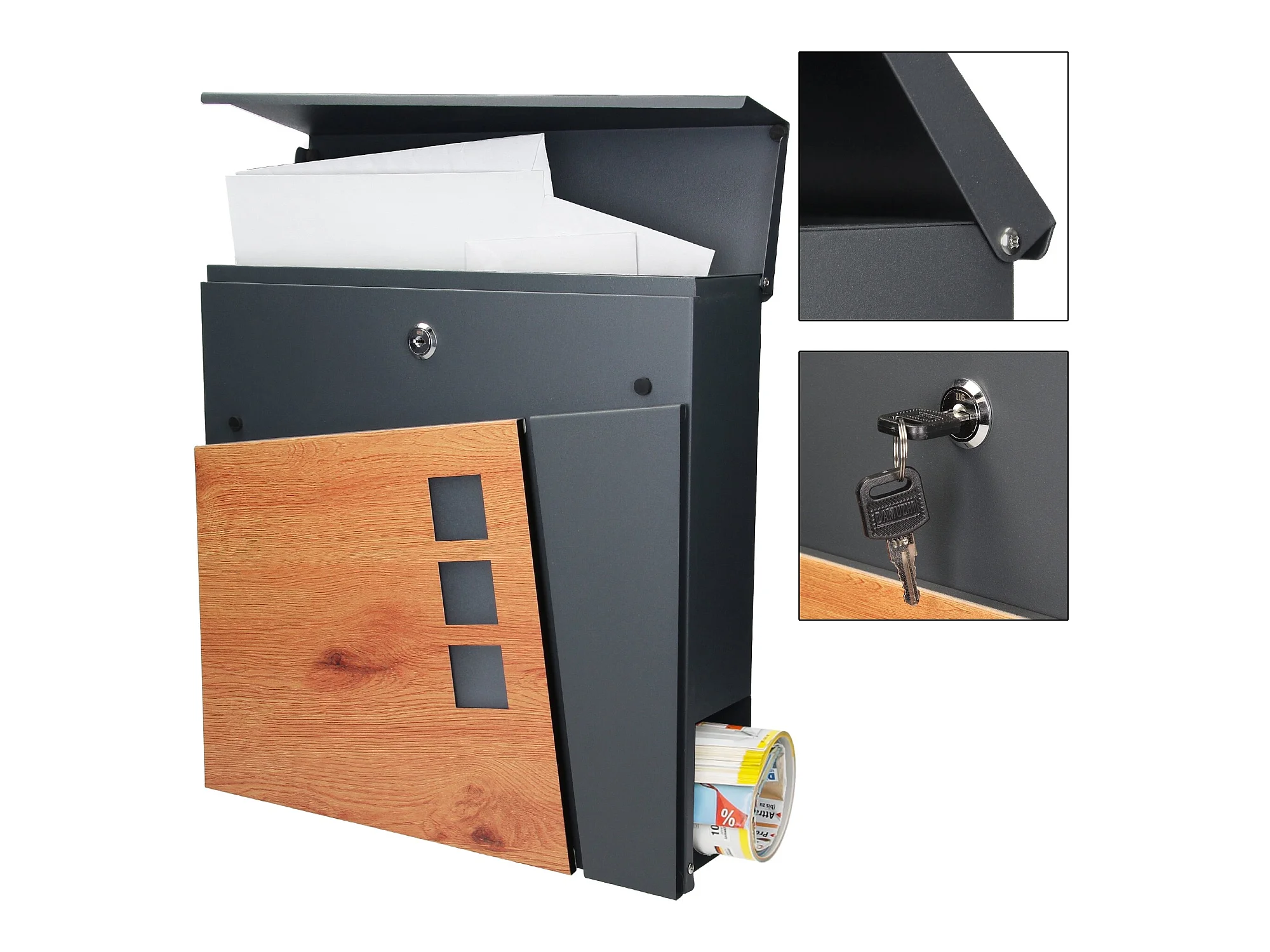 Boîte aux lettres moderne en acier anthracite imitation bois murale ML-DESIGN