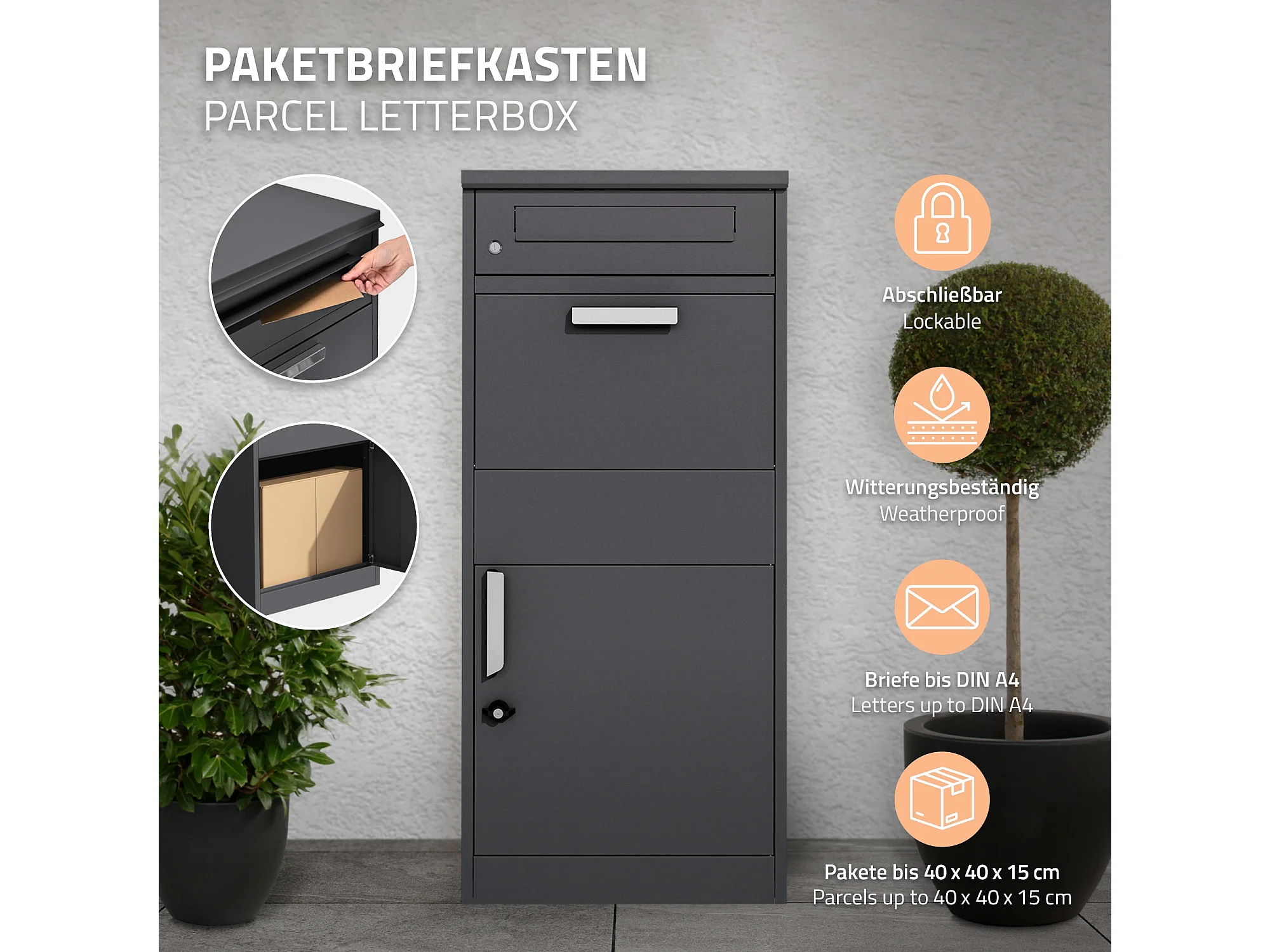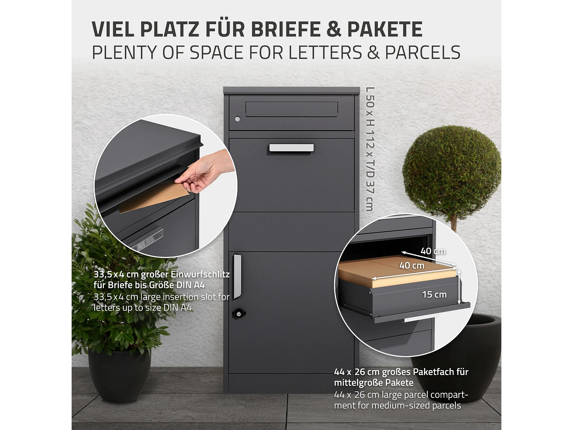 Boîte aux lettres pour colis 50x37x112 cm autoportant 2 clés en acier galvanisé