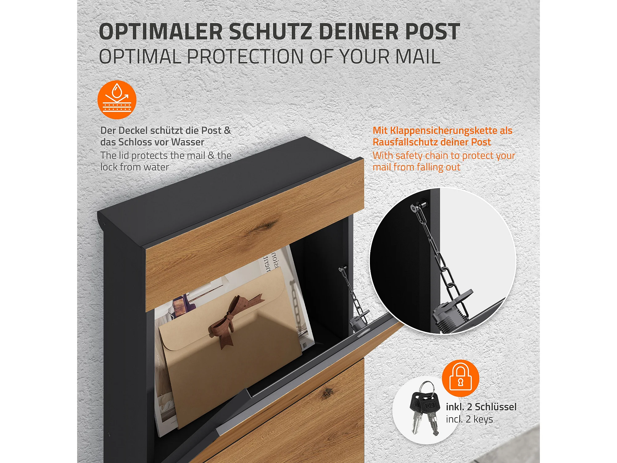 Boîte aux lettres sur pied acier brun aspect bois 39,5x14,1x115 cm boîte postale