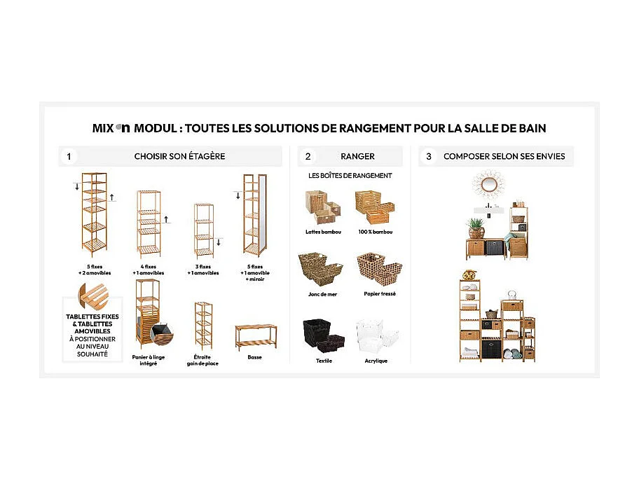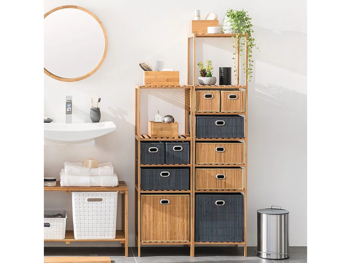 Boîte de rangement Bambou Naturel motif coloré 31 x 31 cm