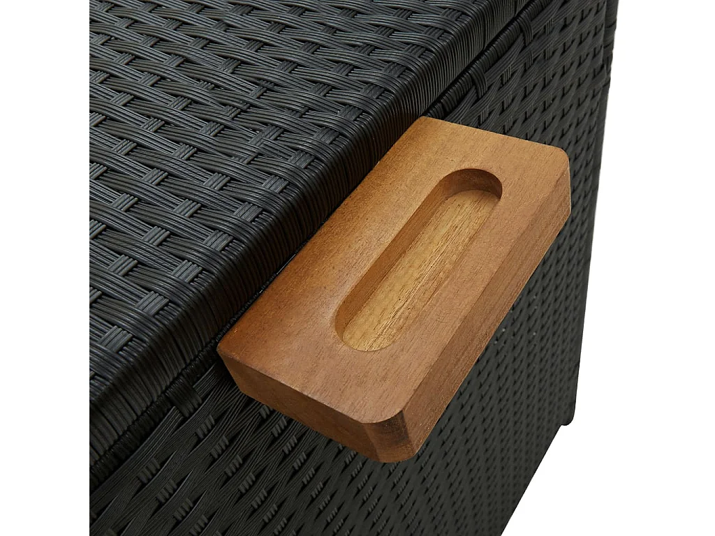 Coffre de rangement de jardin noir résine tressée bois d'acacia FR227265