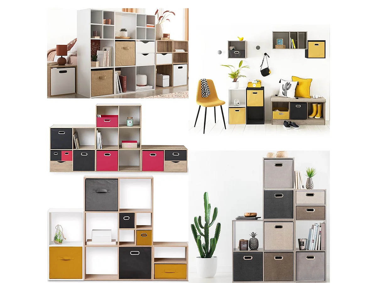 Lot de 2 boites en tissu rouge ELA boîte de rangement ouverte avec poignée dim 27 x 27 x 27 cm, pour linge jouets vêtements