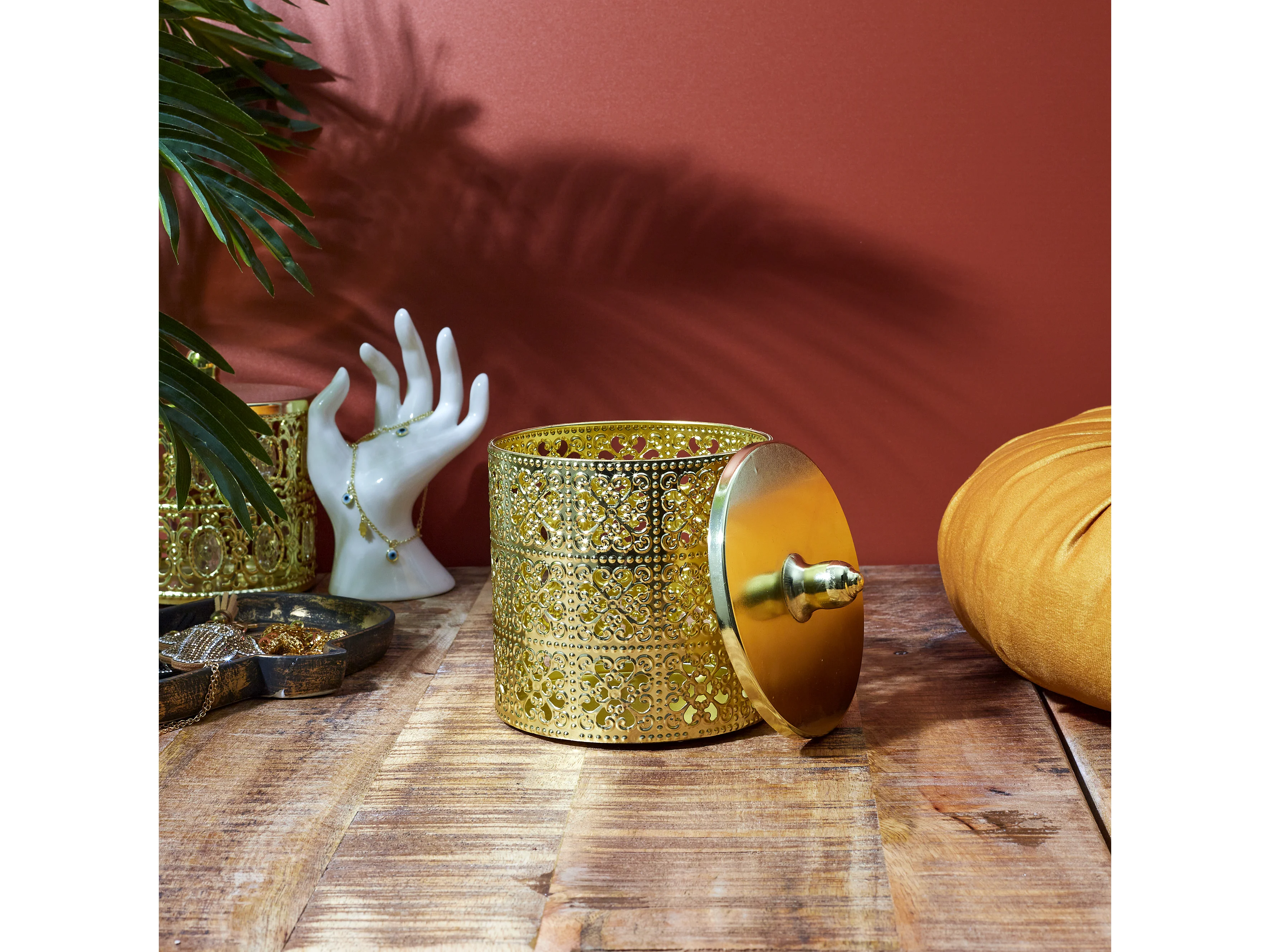 Boite Deco Doree Avec Couvercle H13.5cm Or