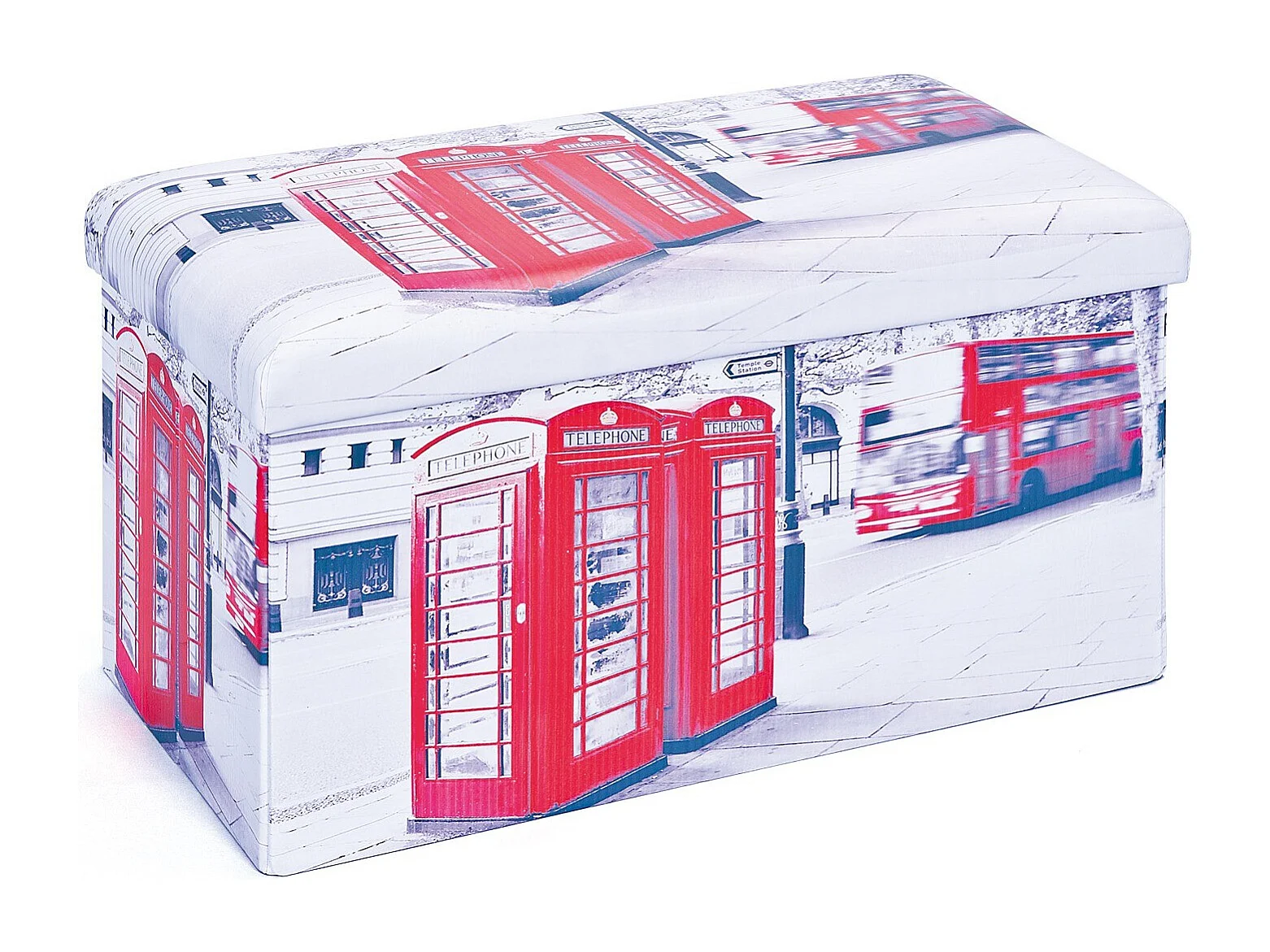 Boîte de Rangement Pliable "London" 76cm Blanc & Rouge