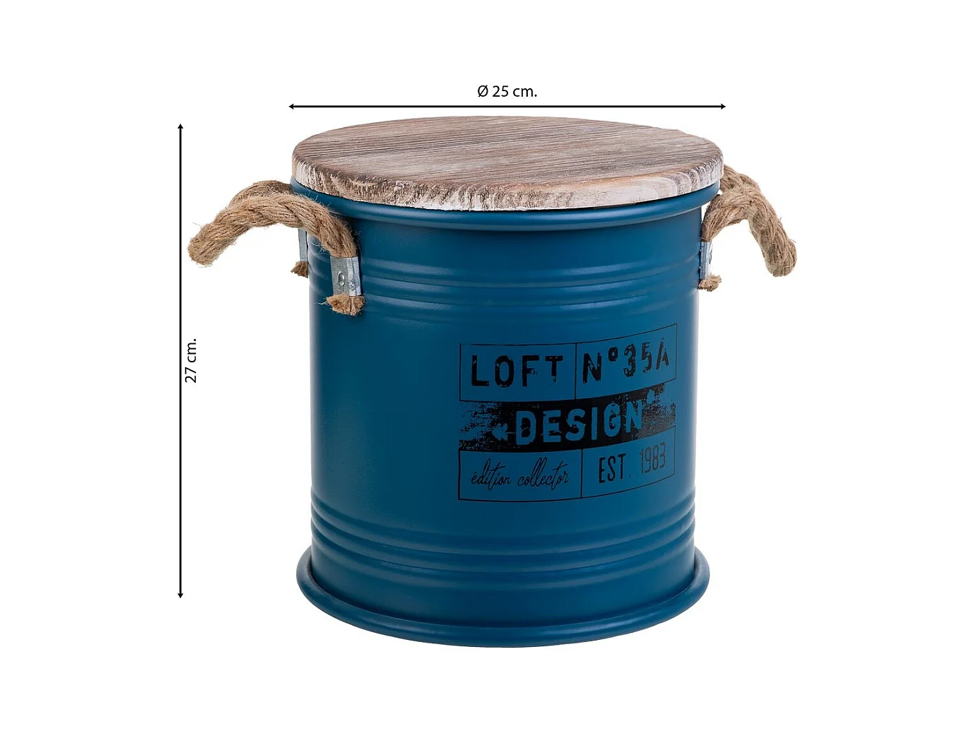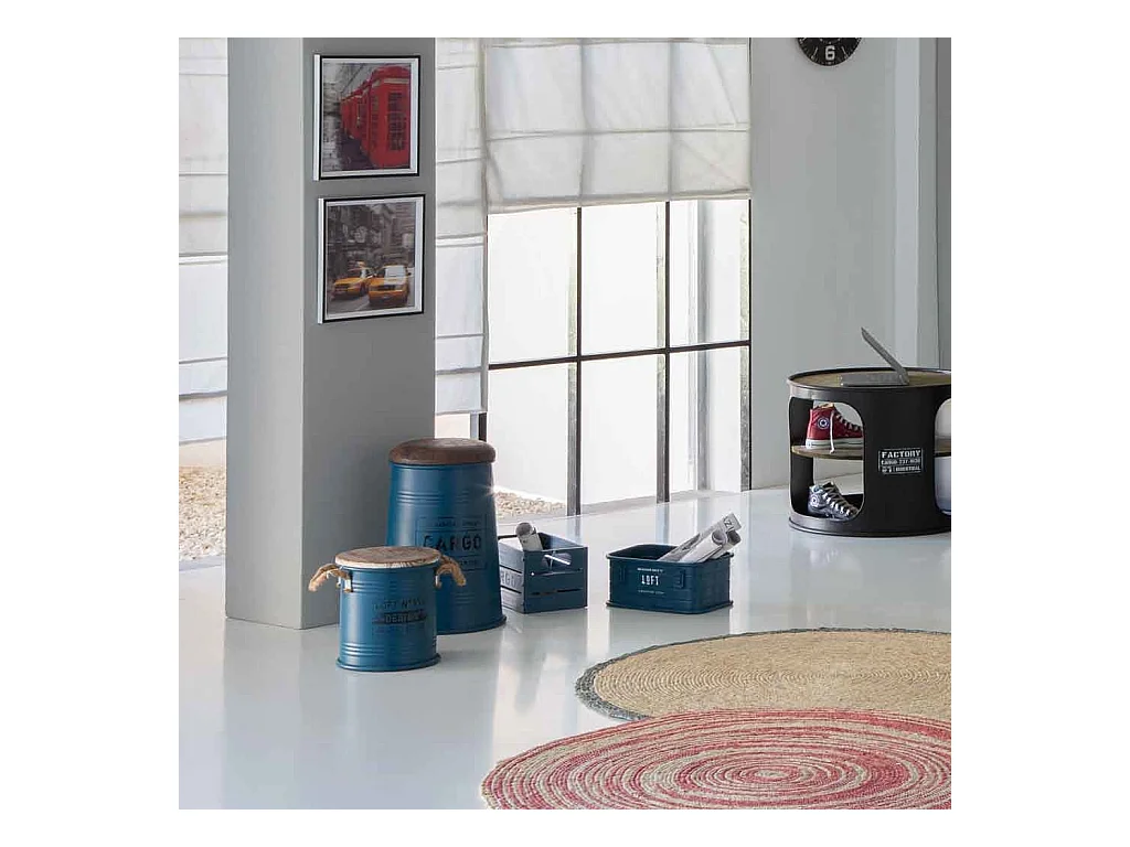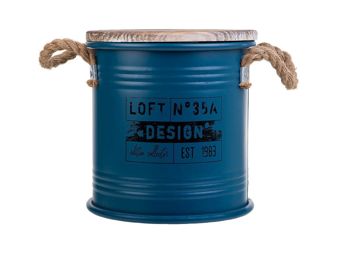 Bidon en métal bleu 24x24x24h