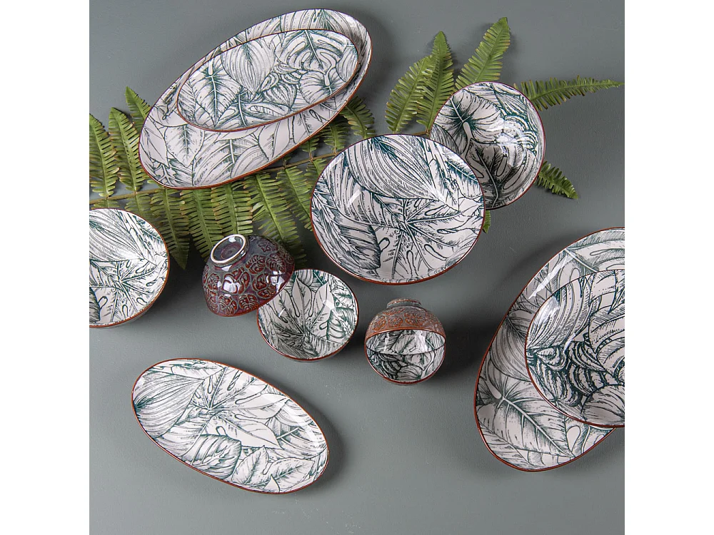 Service d'assiettes 18 pièces Bahia vert et orange