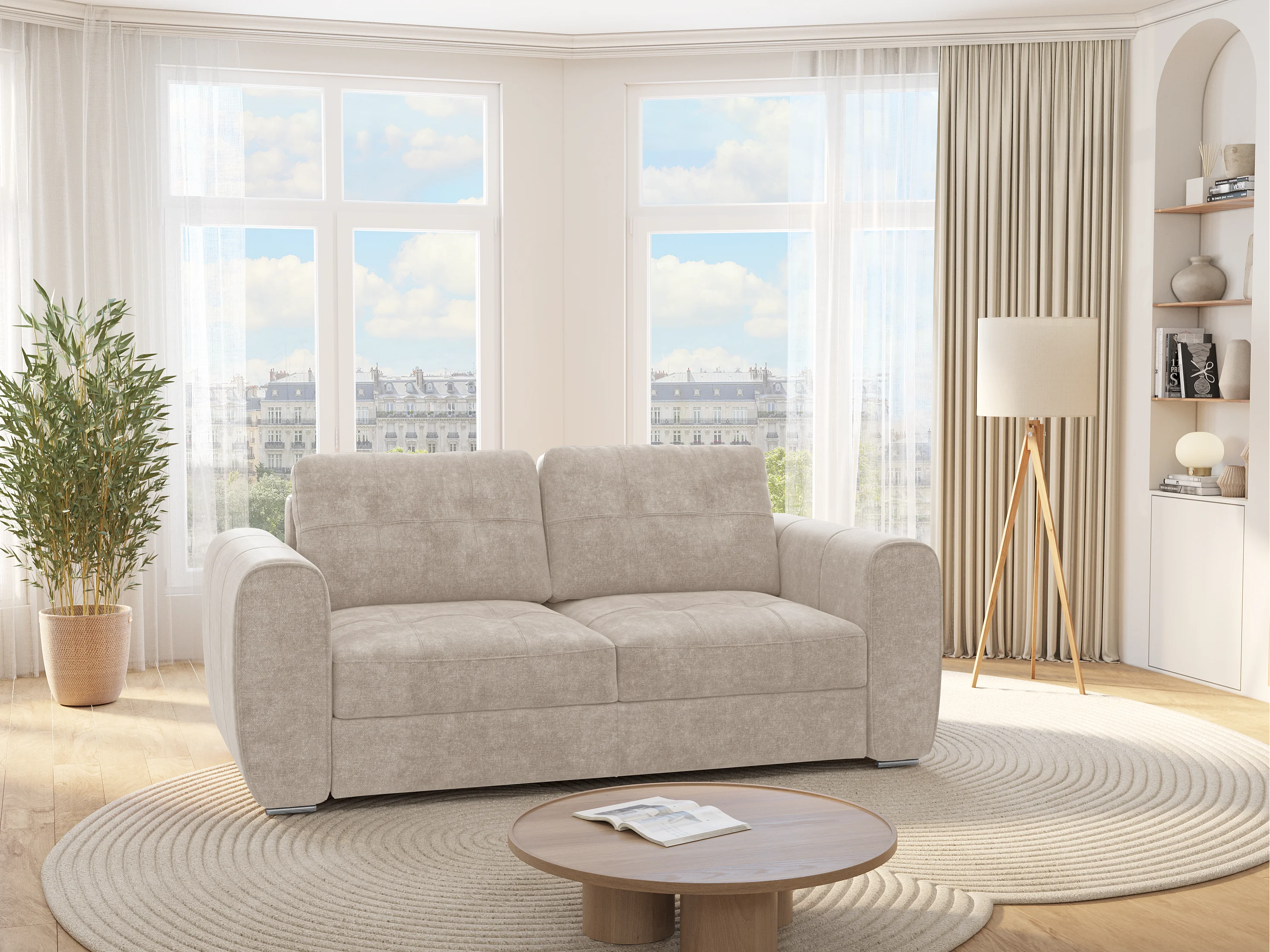 Canapé 3 places convertible express en tissu beige - Couchage 140 cm - Matelas 14 cm BOLIPO