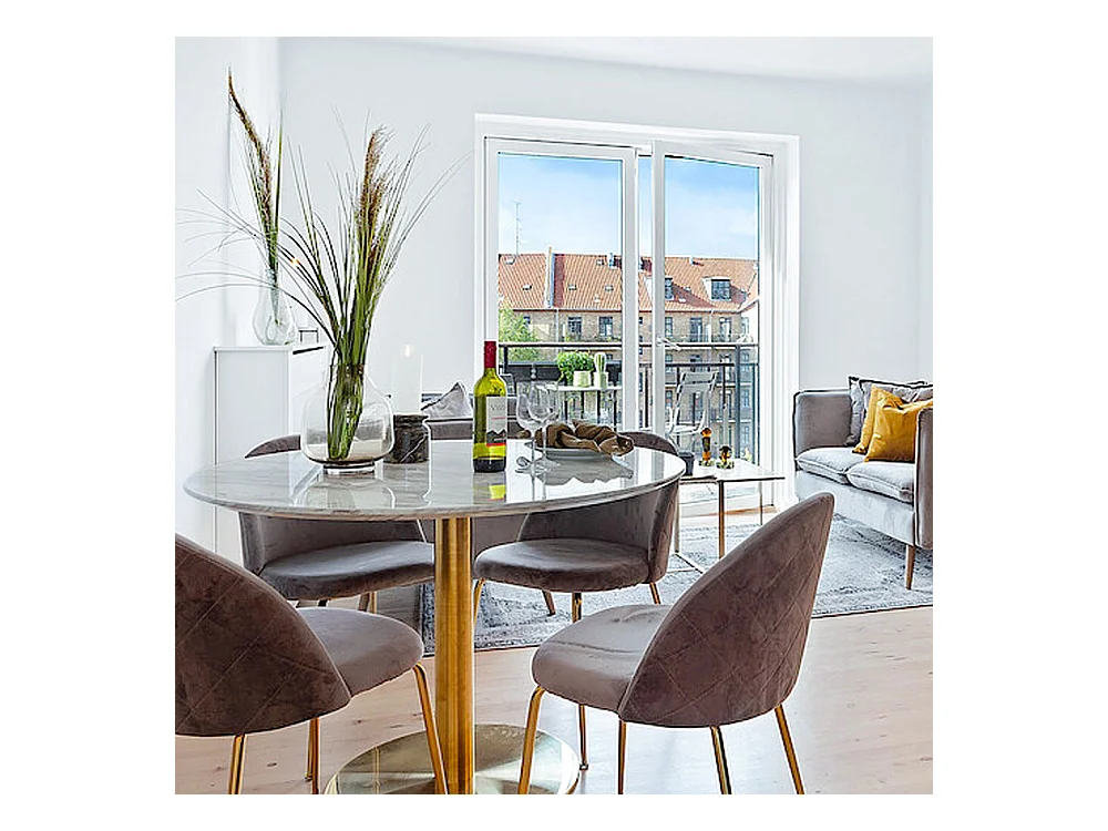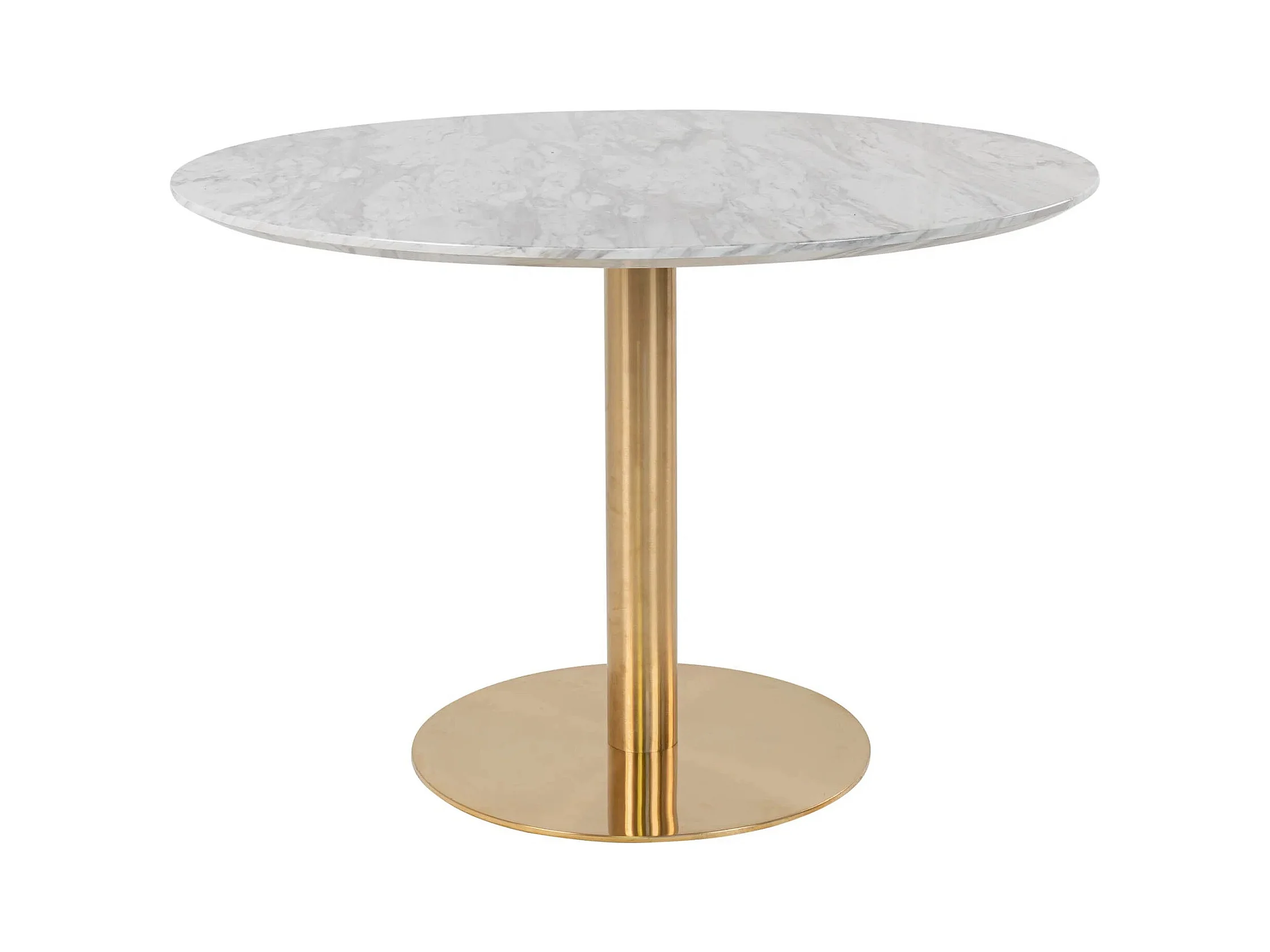 Table à manger ronde PIZA – Effet marbre blanc et pied laiton doré-Diamètre 110 cm