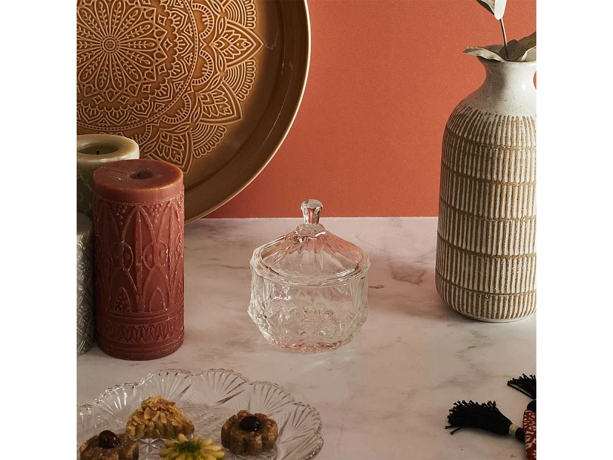 Bonbonnière en verre ciselée transparent Ø9,5cm