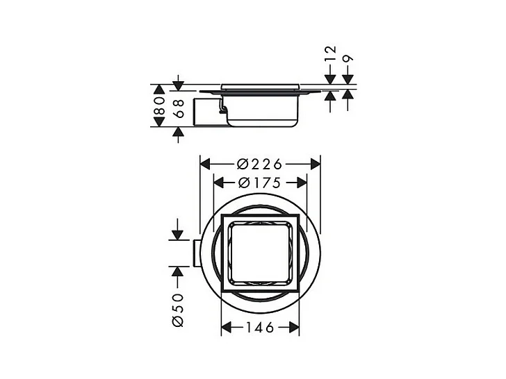 Bonde carrée receveur de douche HANSGROHE RainDrain Spot acier inox brossé