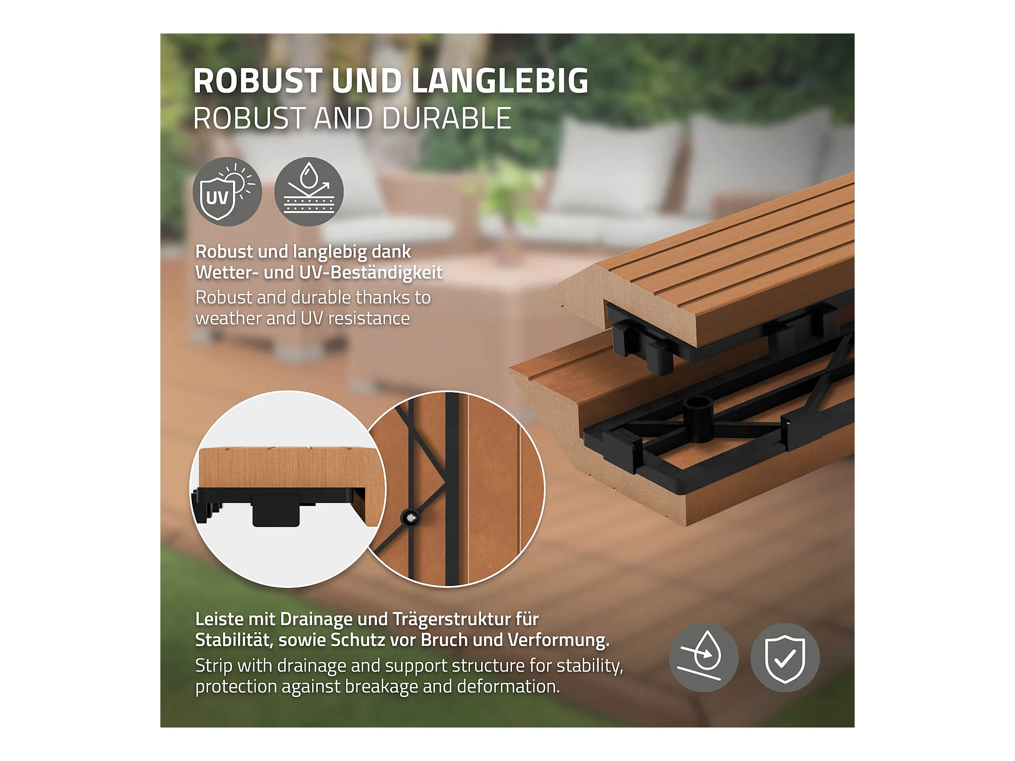 Bordure de finition angle droit 38x2x7,5cm brun foncé Plinthe d'angle striée aspect de bois drainage et structure de support système d'encliquetage