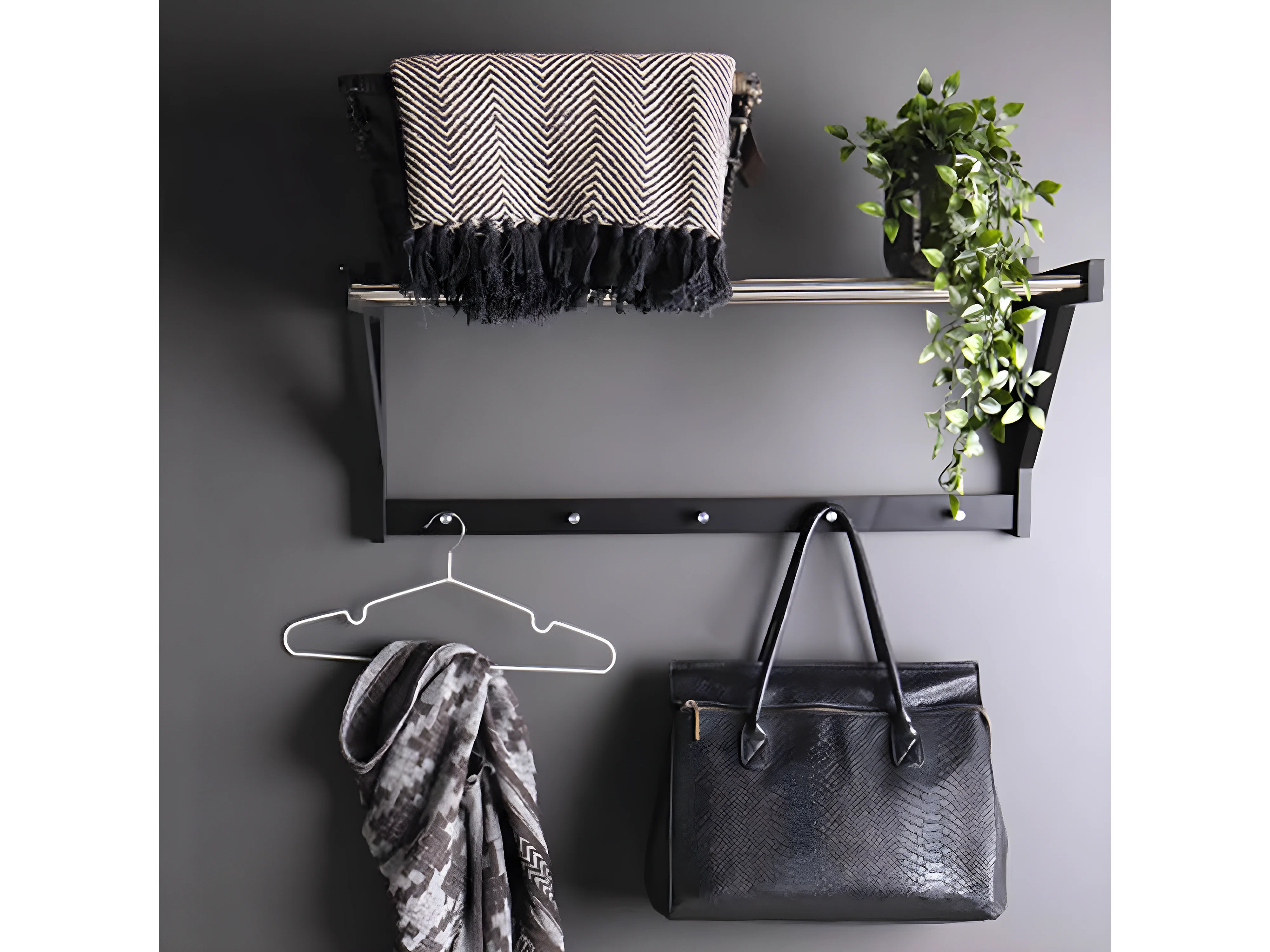 SILANI - Portemanteau 5 Crochets Peuplier Noir et Acier