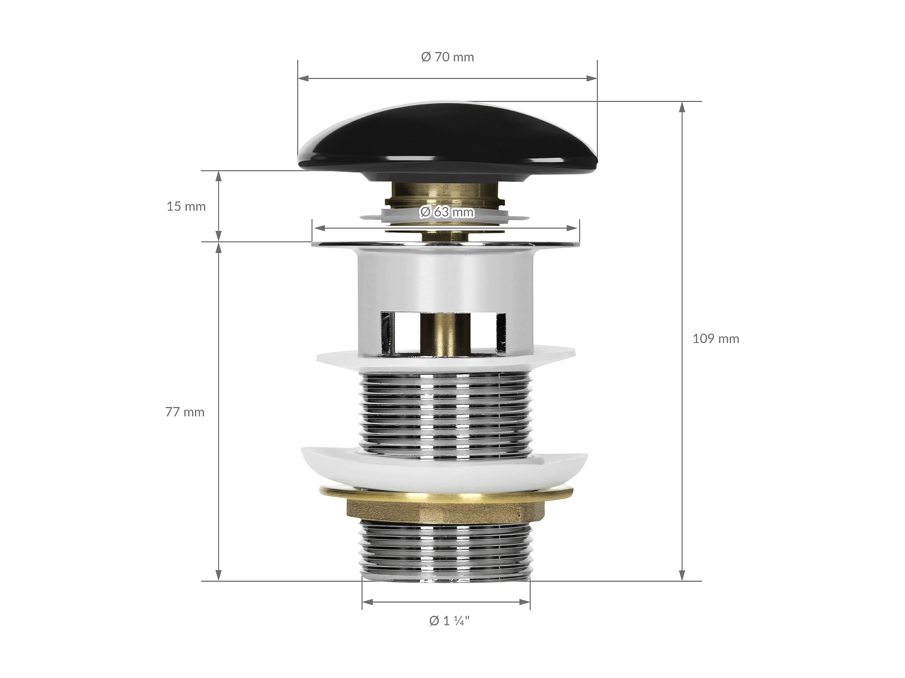 Bouchon de vidange H109mm noir brillant universel fonction pop-up pour lavabo sans trop-plein bonde garniture de vidage en céramique/acier inoxydable