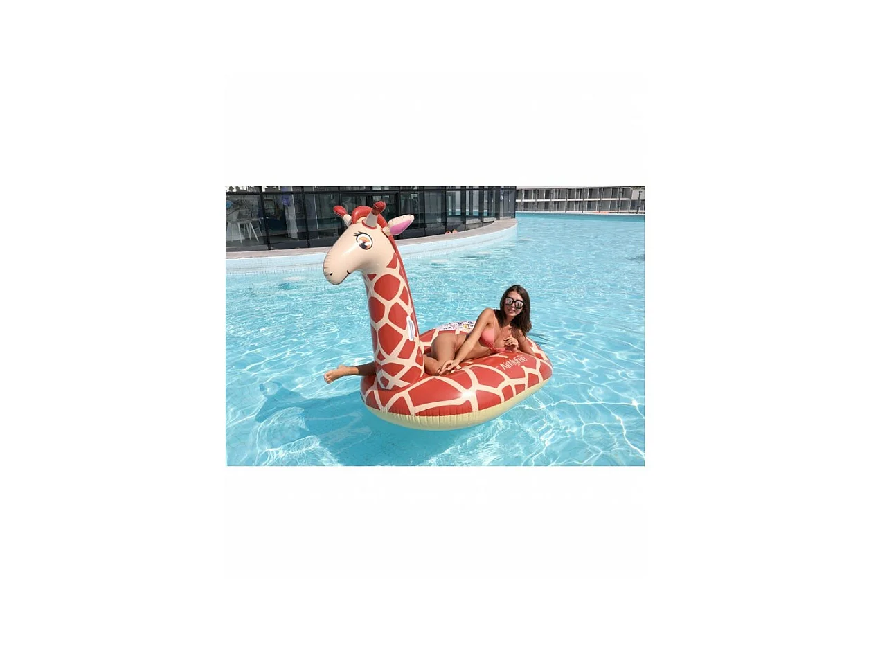 Bouée Gonflable XXL Chevauchable, Piscine & Plage, Flotteur Deluxe - Giraffe 140x140x105cm
