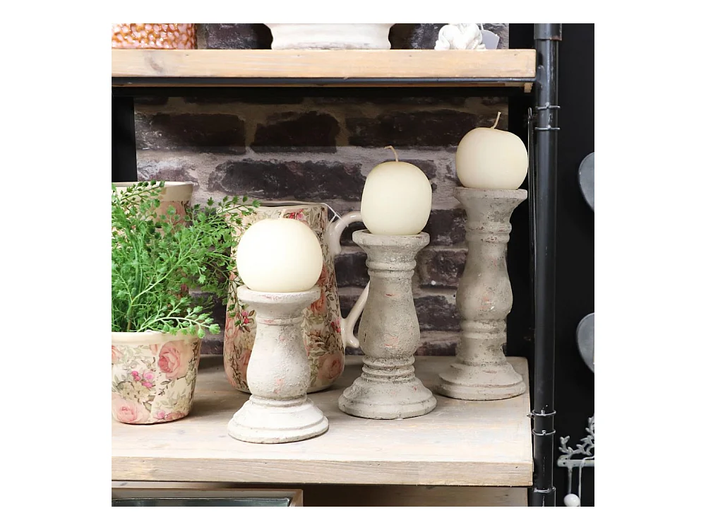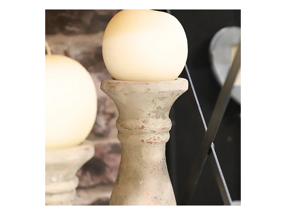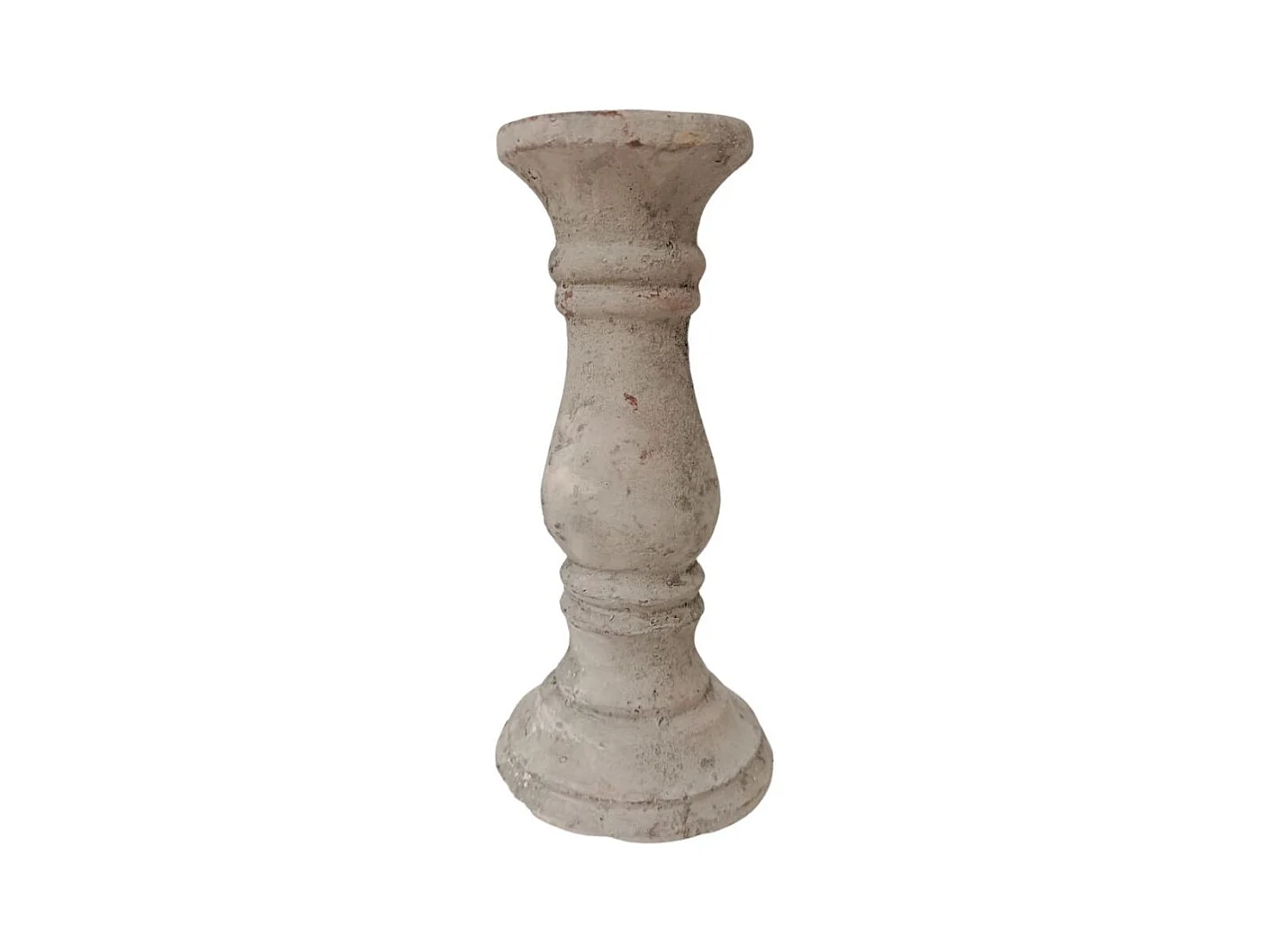 Bougeoir chandelier photophore ancien ciment vieilli gris marron 25cm